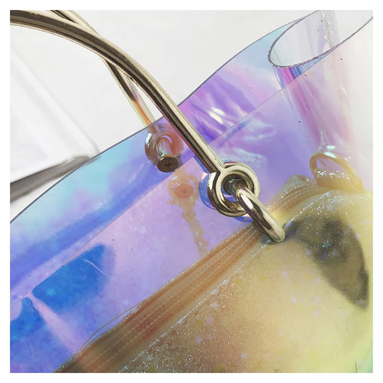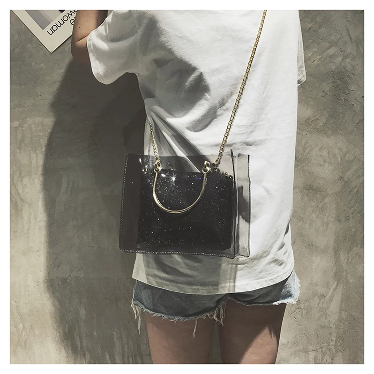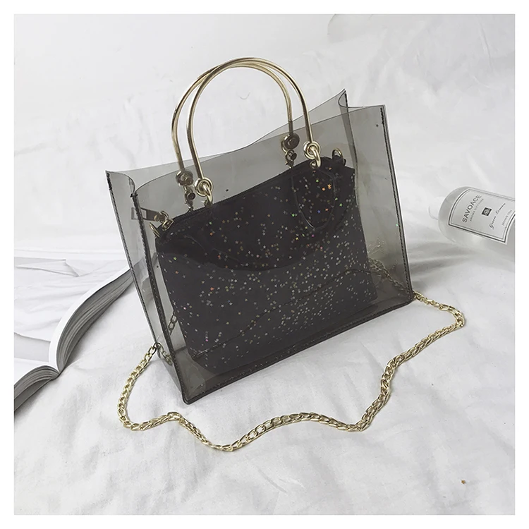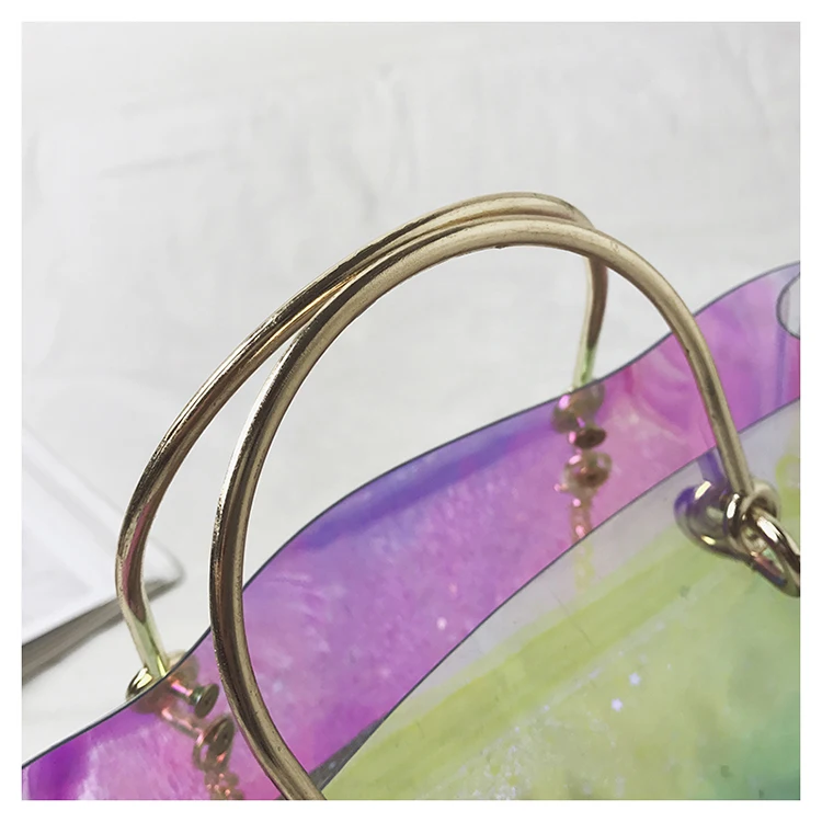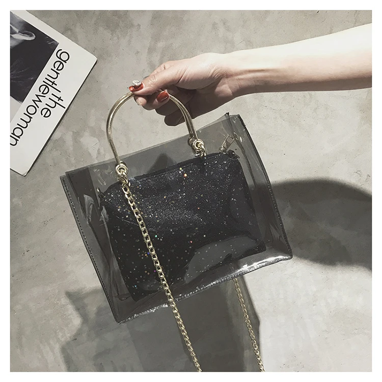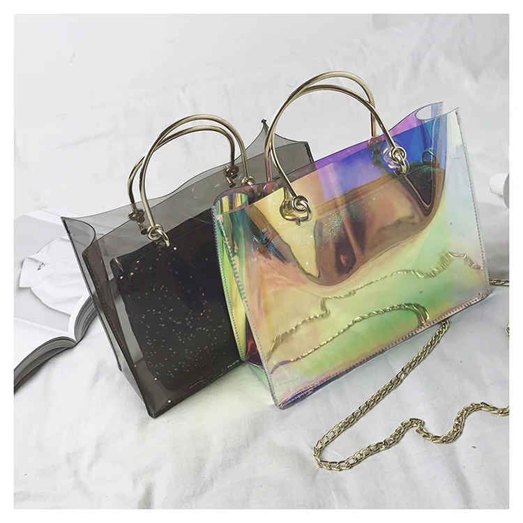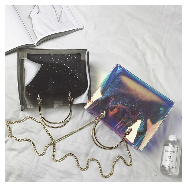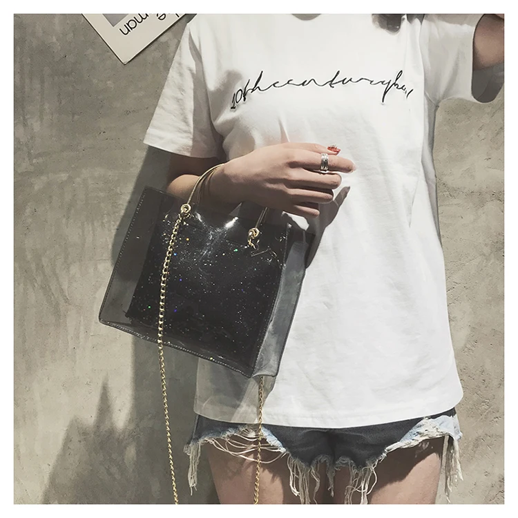 Лазерная прозрачная Желейная сумка женская модная металлическая цепочка ручная