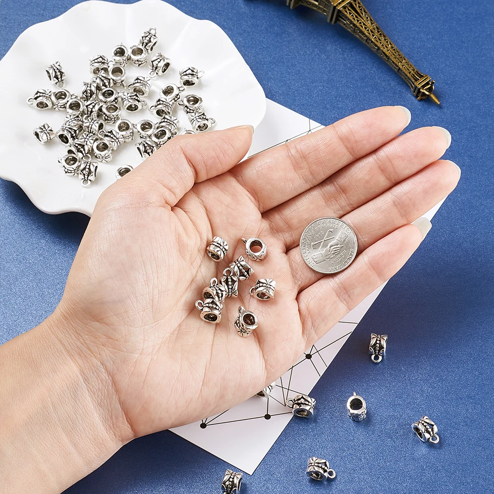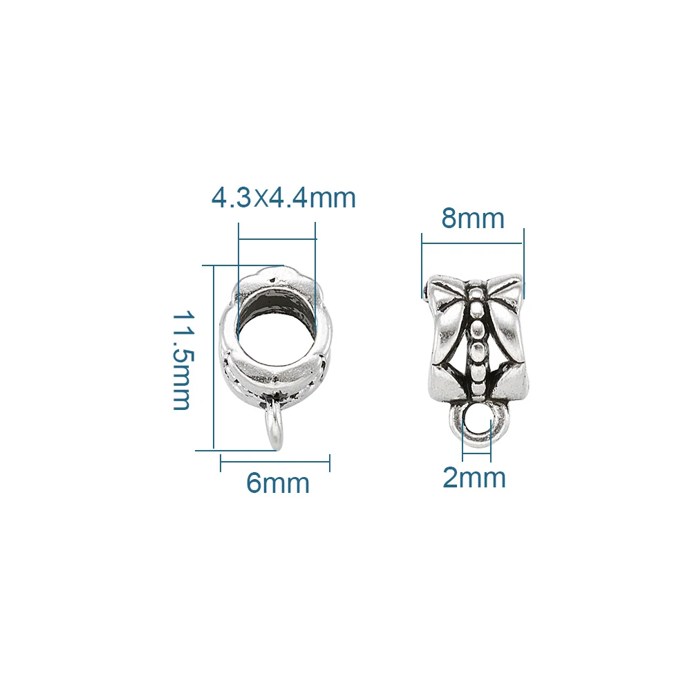 Античный серебряный цвет Размер: длина около 11,5 мм, ширина 6 мм, толщина 8 мм, отверстие: 2 мм; Внутренний диаметр: 4.3x4.4мм