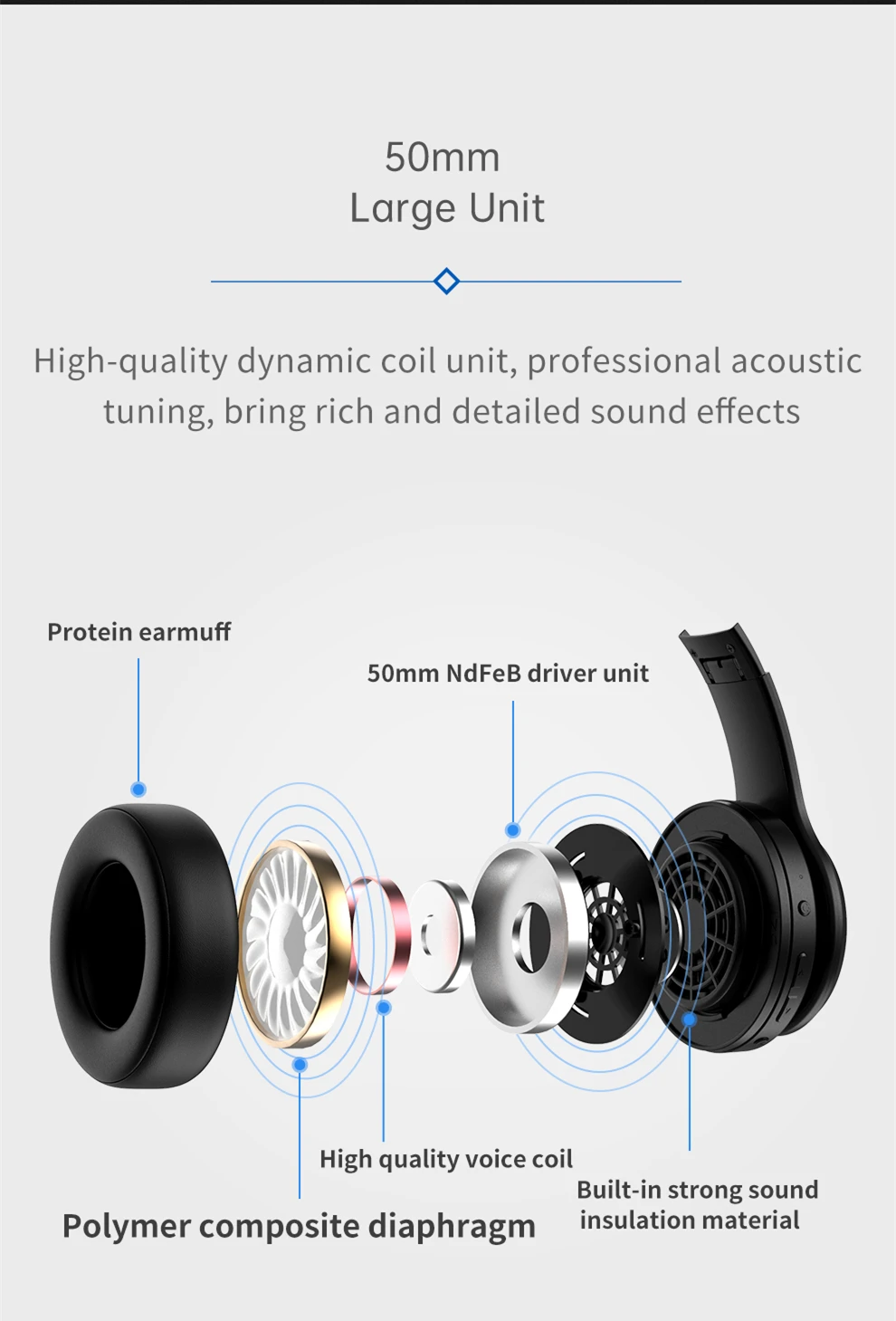 50 мм мощные драйверы, которые сохраняют все свои музыкальные детали и подходят как можно ближе к оригинальной записи.