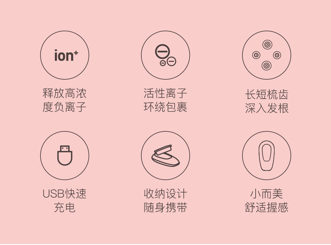 Youpin Wellskins темно-ионная расческа для волос, генератор для салонного укладки волос, портативная зарядка через USB, отрицательные ионы, расческа, массаж