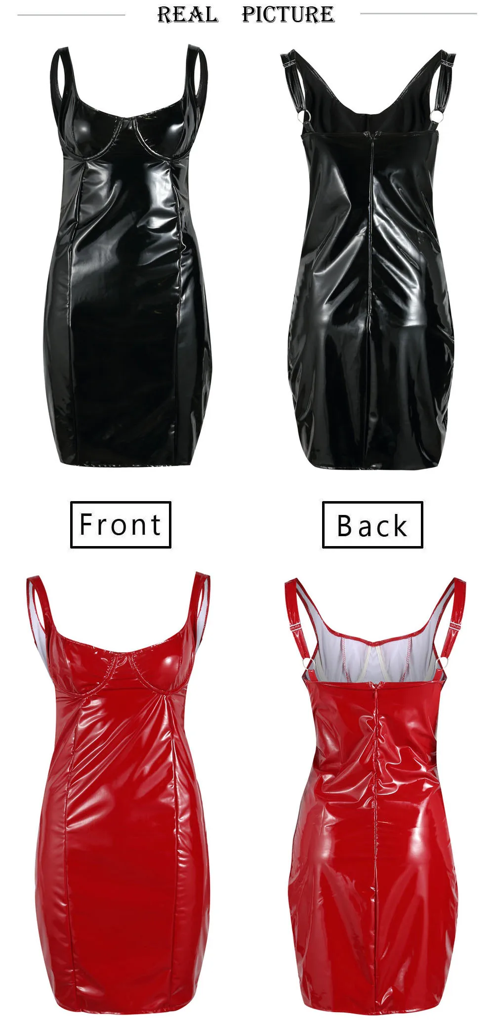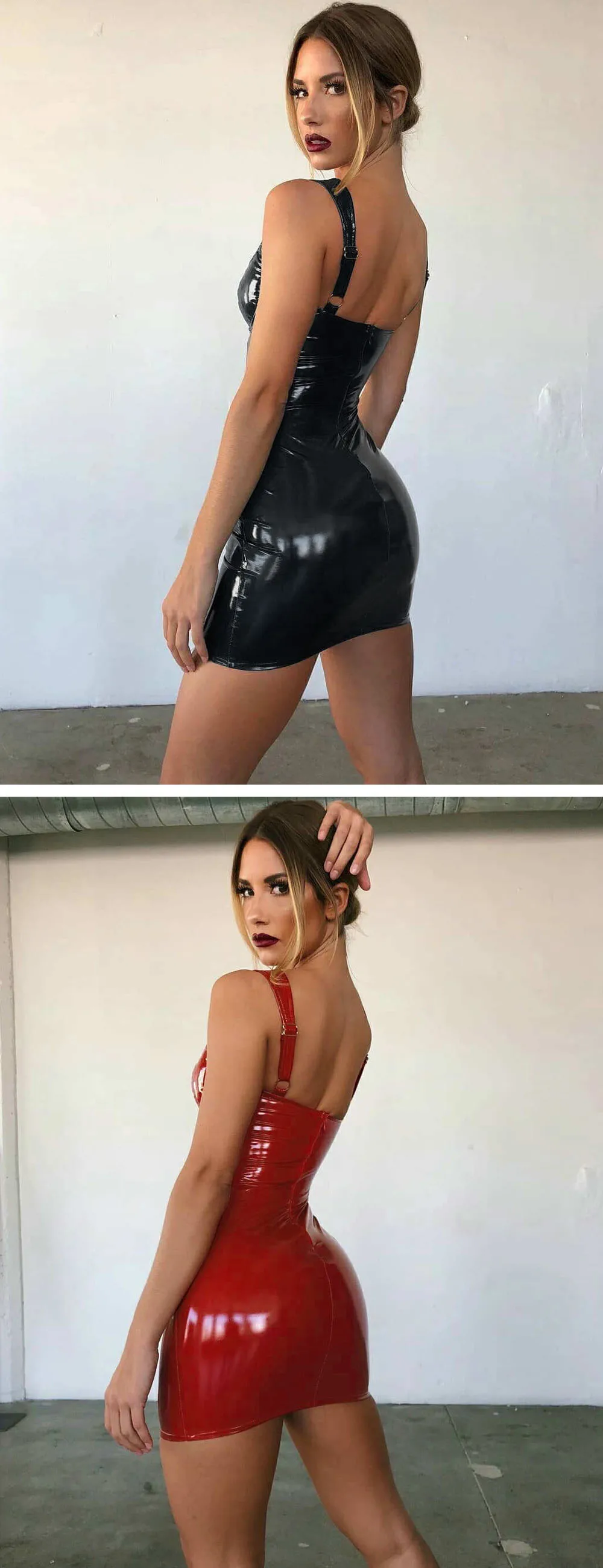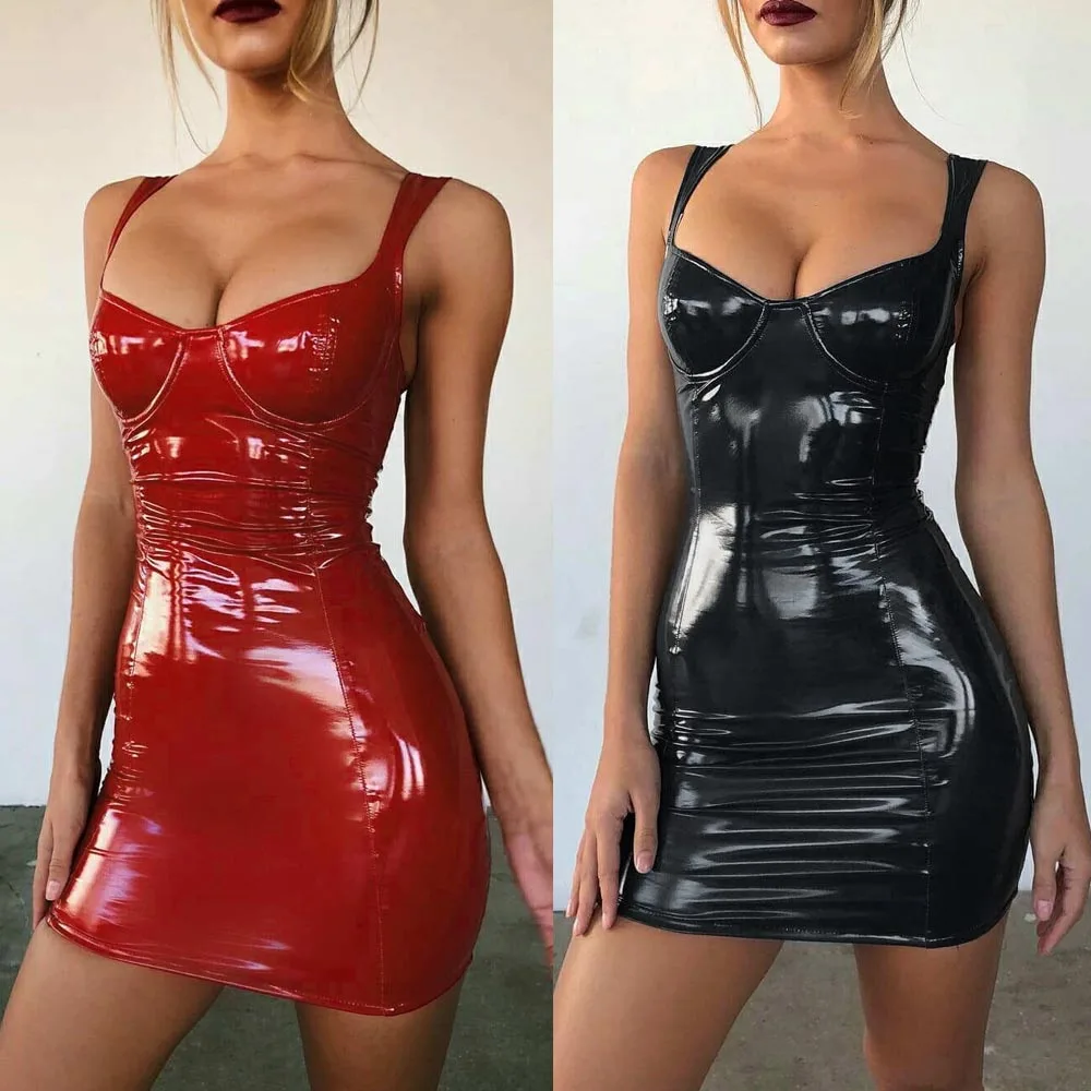 Простой дизайн, подходит для разных случаев. Идеально подходит для вашей фигуры. Идеальное платье для пляжа, клуба, вечеринки, вечера, конкурса красоты. Длина платья: мини-платье Стиль рукава: без рукавов Материал: искусственная кожа Цвет: черный, красный