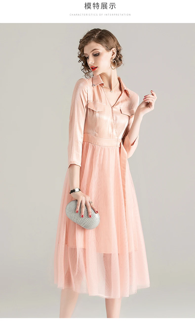 Boollili Summer Dress 2020 Vintage Elegant Office Midi Women Clothes Ladies Dresses Korean Pink Mesh Vestidos | Женская одежда