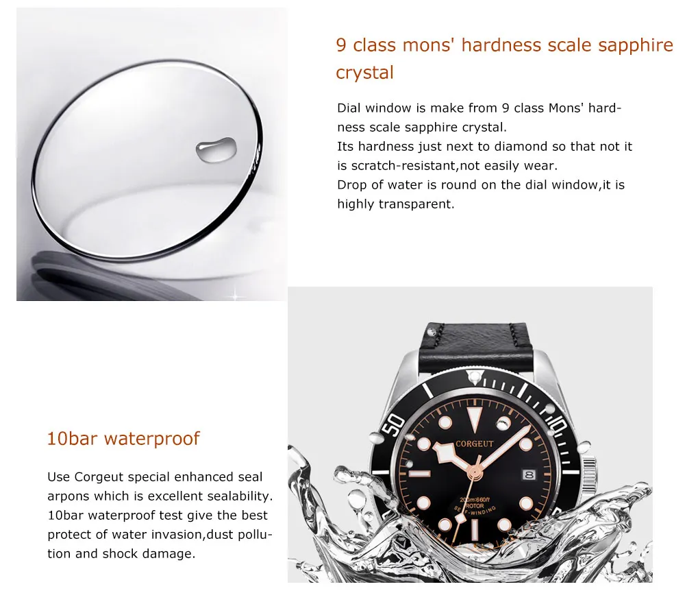 Мужские электронные часы с сапфировым стеклом механические Автоматические