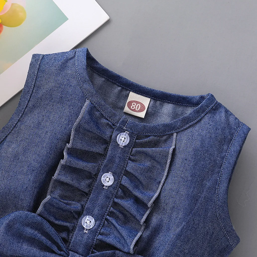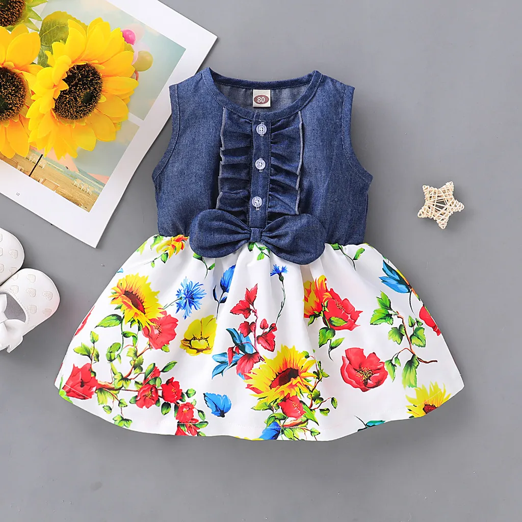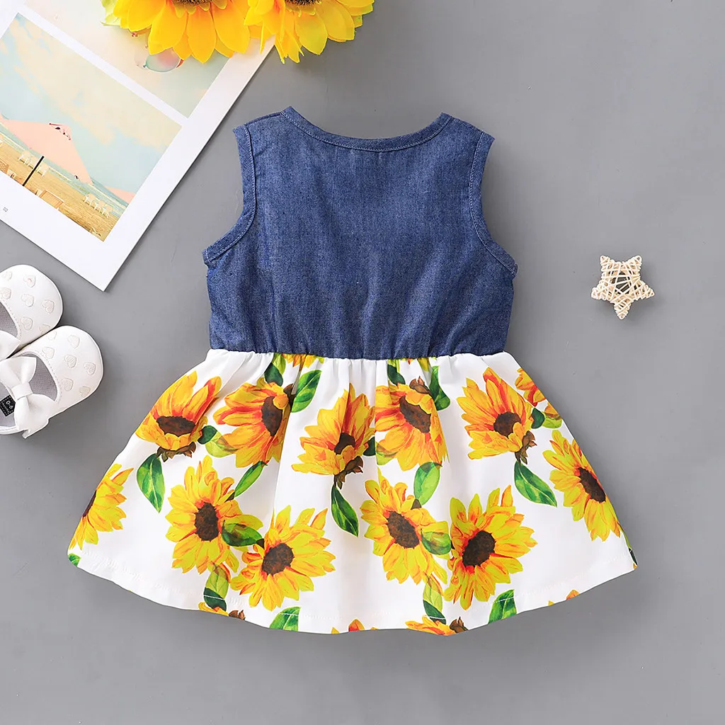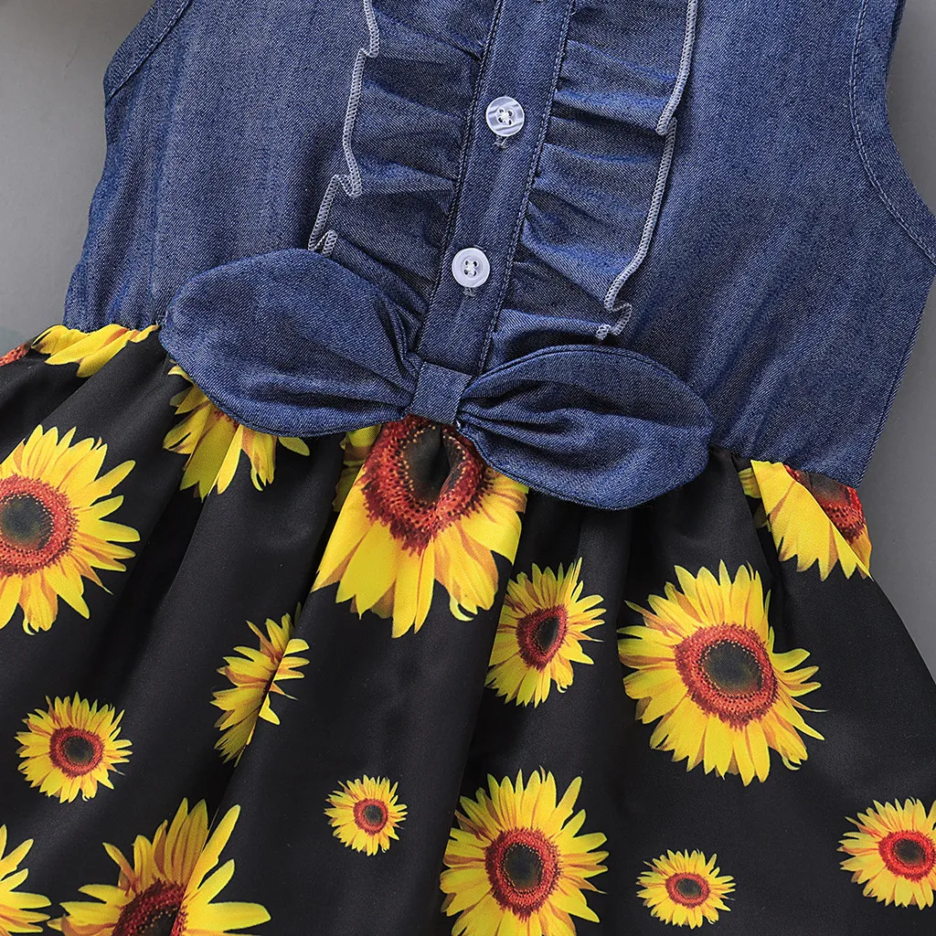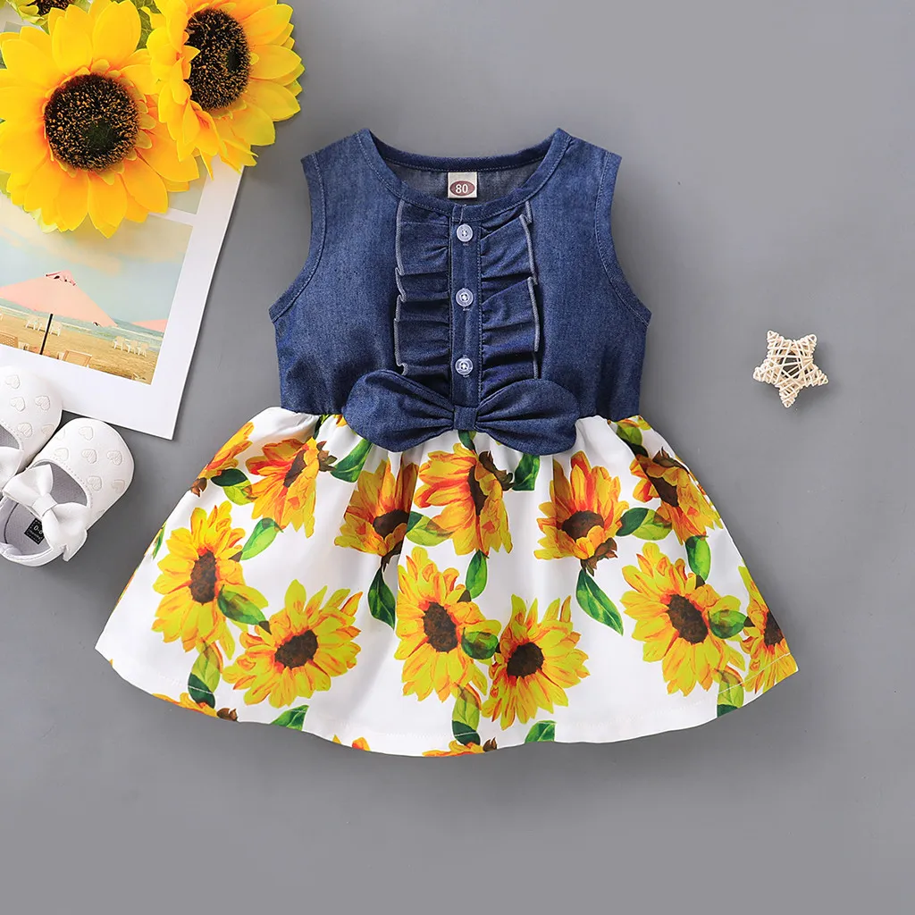 Летнее платье Детское джинсовое платье без рукавов с бантом для девочек, платье с принтом подсолнуха и подсолнуха новое платье для маленькой девочки 50 *