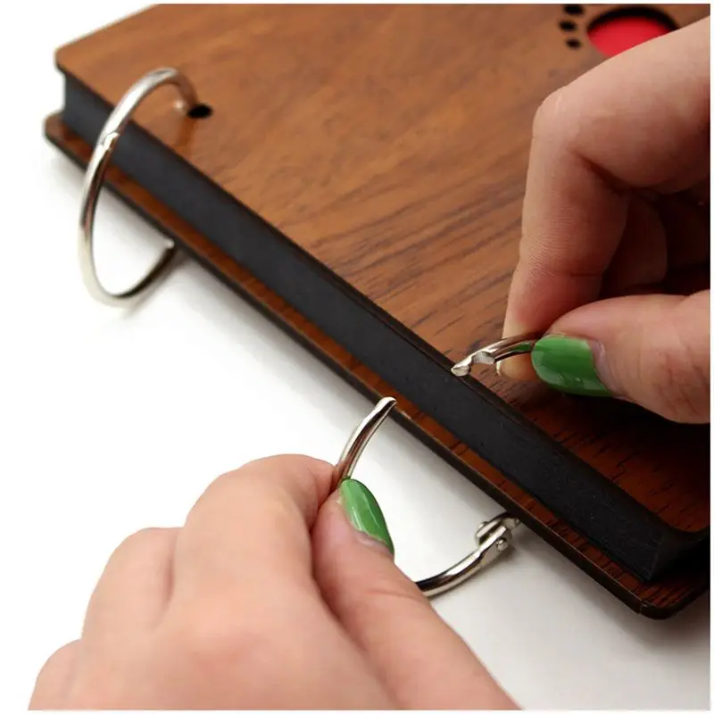 Размер крышки: 22x16 см, внутренний размер страницы: 7,9x5,9 дюйма, поставляется с 2 кольцами. Вы можете разместить фотографии с помощью треугольных наклеек или угловых наклеек.