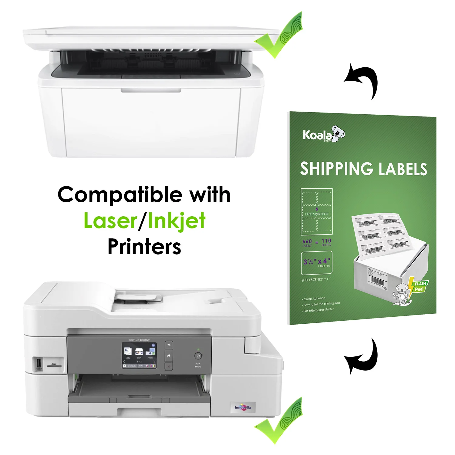 Точный раскрой тканей высоковольтных линий легко и быстро шелушения Эта клейкая наклейка с штрих-кодов можно наклеить в полиэтиленовые пакеты, конверты пузыря, коробки, конверты, отлично подходит для доставки крупных партий зависят от почтовые ярлыки Водяные знаки на обратной стороне листа, которые помогут вам быстро вы правильно различили принтом сбоку Совместимость с лазерной, так и струйные принтеры Нарезана так, чтобы вы смогли самоклеящихся этикеток, 2 пластину алюминиевого сплава/лист, 110 листов = 220 этикетки