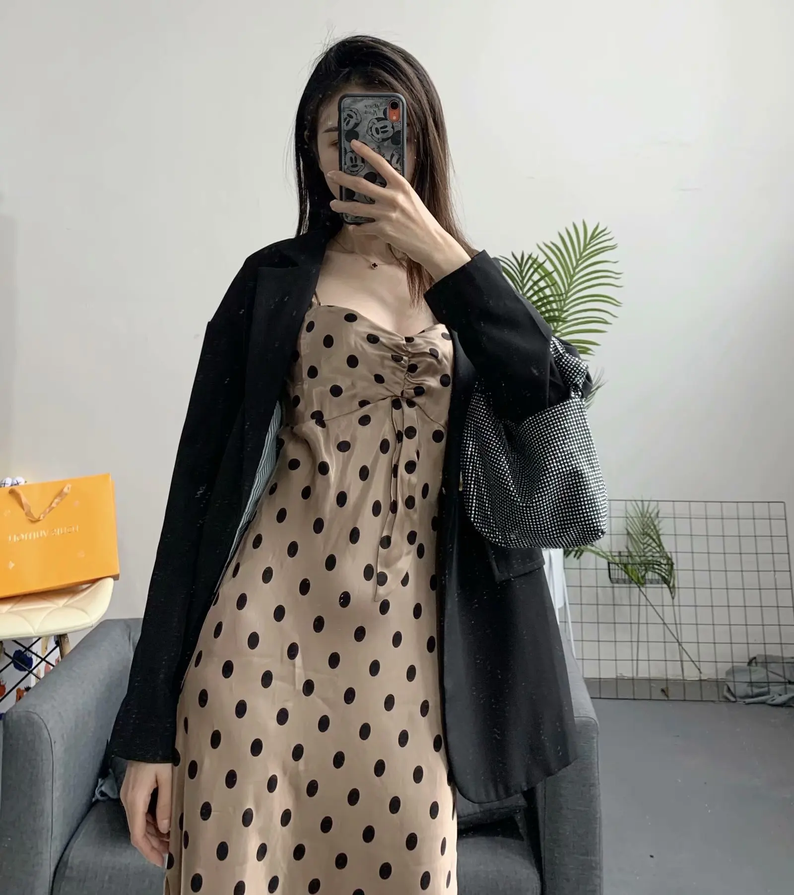 MSSNNG Real Shot 2019 Retro bBack Dress Sen Waist Cake Chiffon Wave Point Elegant Woman Party Night S-3XL | Женская одежда