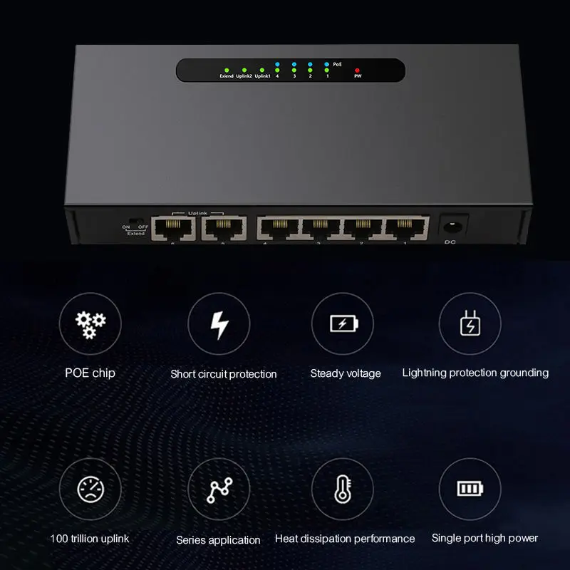 Diewu 6 Порты и разъёмы Poe коммутатор Gigabit Ethernet сетевой коммутатор Gigabit 10/100/1000 Мбит сетевой концентратор 4 Порты и разъёмы Poe Мощность выключатель инъектор для Ip Камера (штепсельная Вилка европейского стандарта)