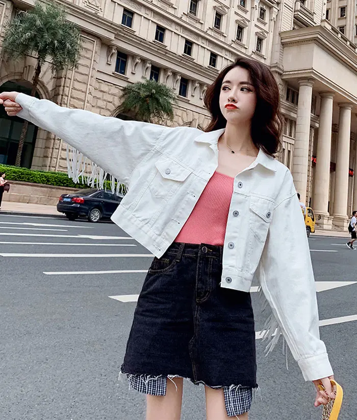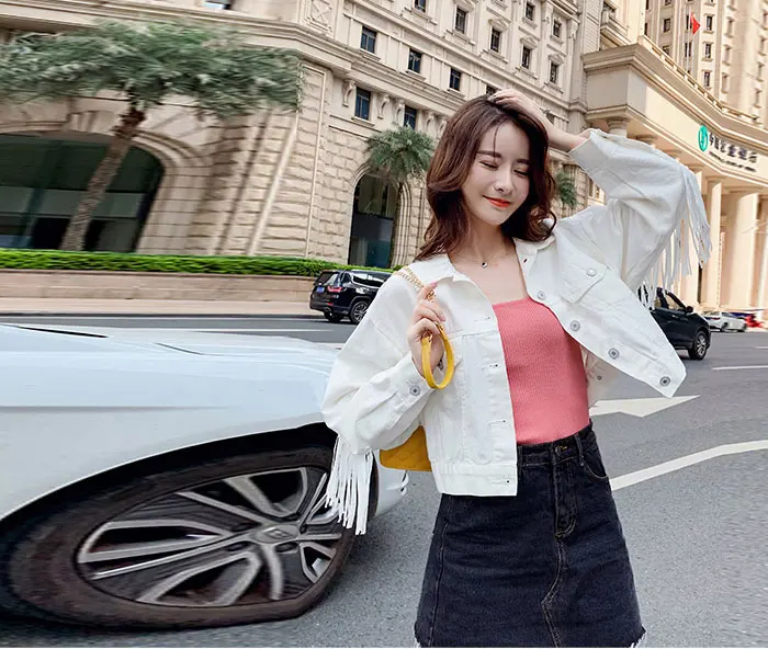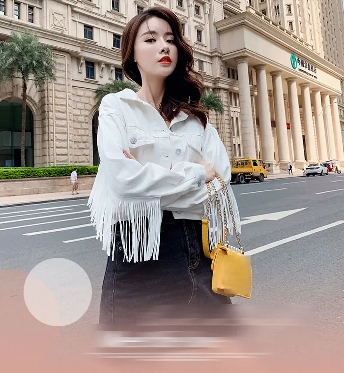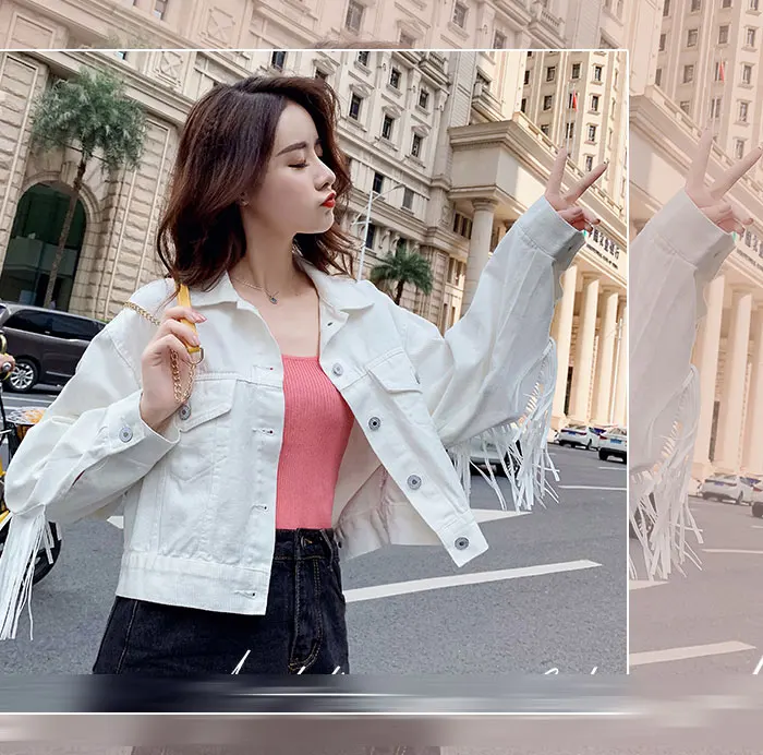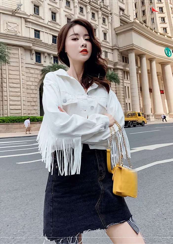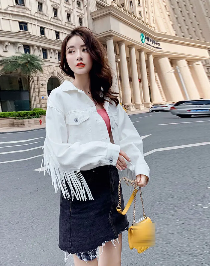 Женская куртка-бомбер джинсовая куртка с бахромой короткая модная женская
