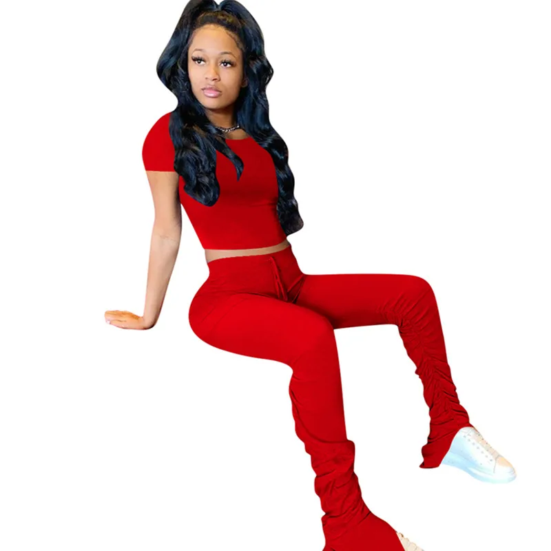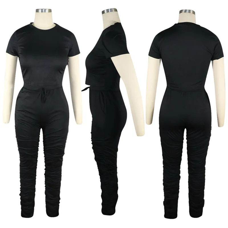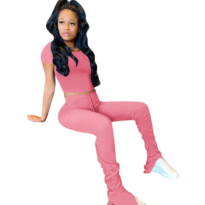 Повседневный однотонный хлопковый спортивный комплект со штанами с короткими рукавами
