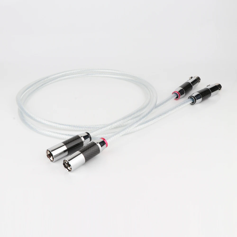 Pair 5N OFC Silver Plated XLR Analogue Cable with Rhodium plated Carbon fiber XLR plug HIFI XLR Audio Cable