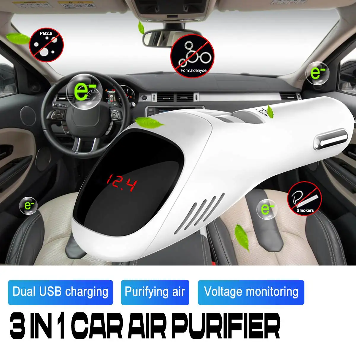 Автомобильный очиститель воздуха 12 В 24 В отрицательные ионы воздухоочиститель-ионизатор освежитель воздуха автоматический туман двойной USB быстрое автомобильное зарядное устройство HD цифровой дисплей