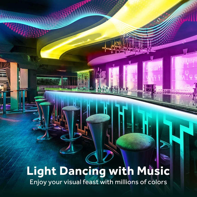 Беспроводная управляемая кухонная полоска Беспроводное управление Alexa и Google Home может значительно освободить ваши руки! Легко Украсьте свой бар, создайте атмосферу вашего дома. Вечерние огни, которые танцуют с музыкой Govee RGB светильник полоса может активировать с помощью музыкальной ударов и получите идеальную работу для вечеринок и событий украшений, таких как Рождество, День Святого Валентина, подарки, дни рождения, свадьбы и Новый год. Светильник окружающего настроения для спальни Установите светодиодный светильник, как подвесной светильник, расслабьте свой ум и сделайте вашу спальню потрясающей и яркой.