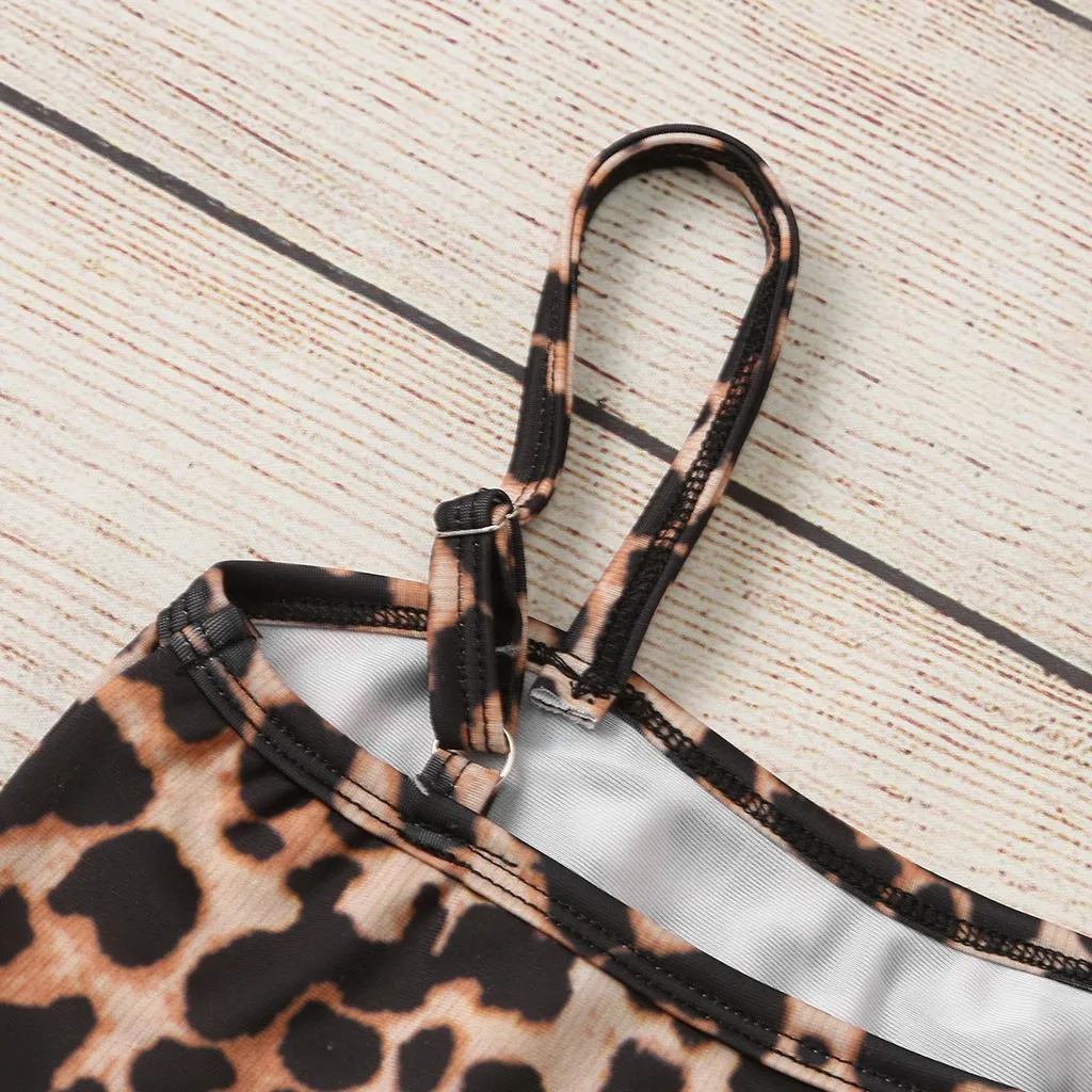 Купальный костюм с леопардовым принтом и оборками для маленьких девочек, топ и шорты, комплект для купания