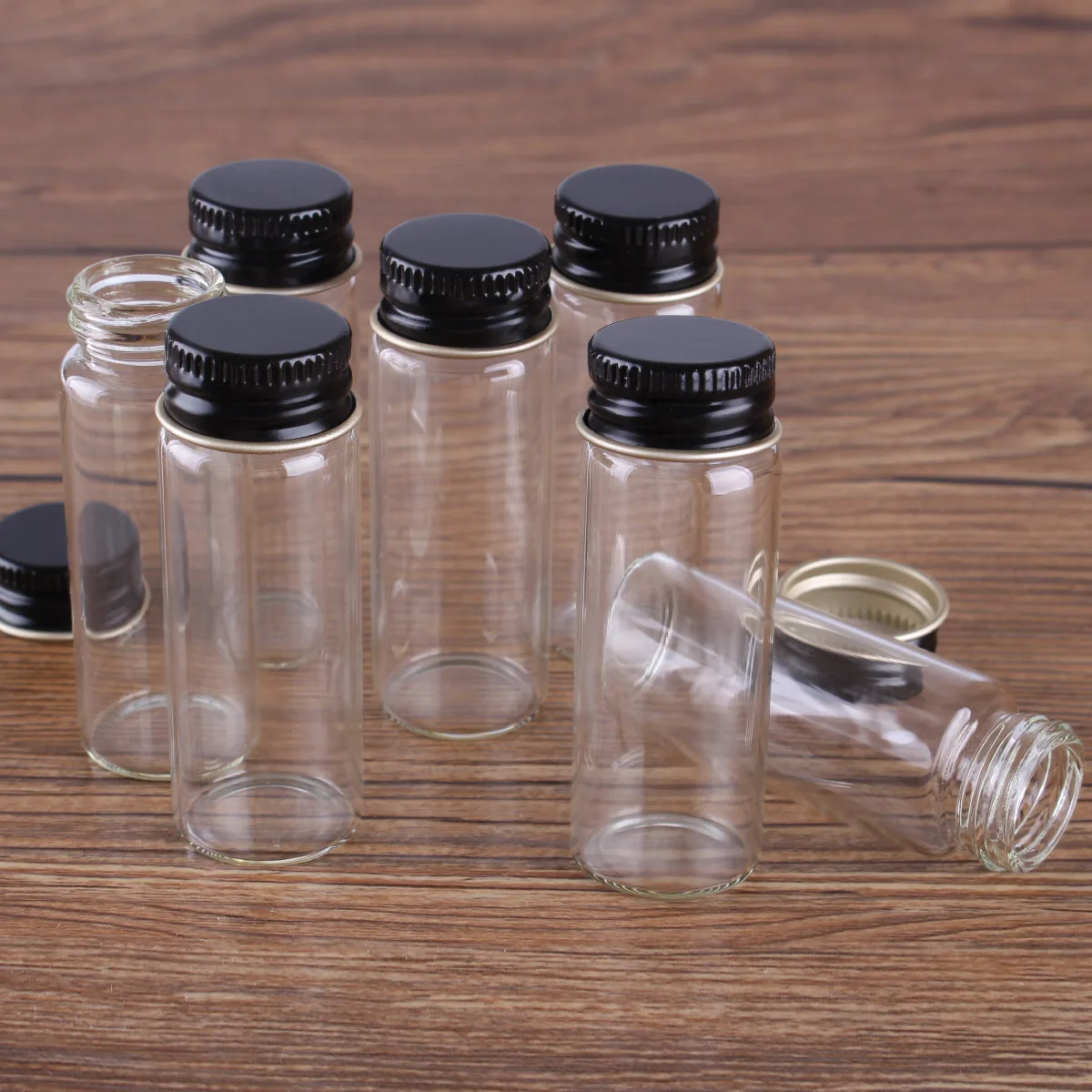 48 штук диаметр 22 мм стеклянные бутылки с черными алюминиевыми крышками 5-14 мл