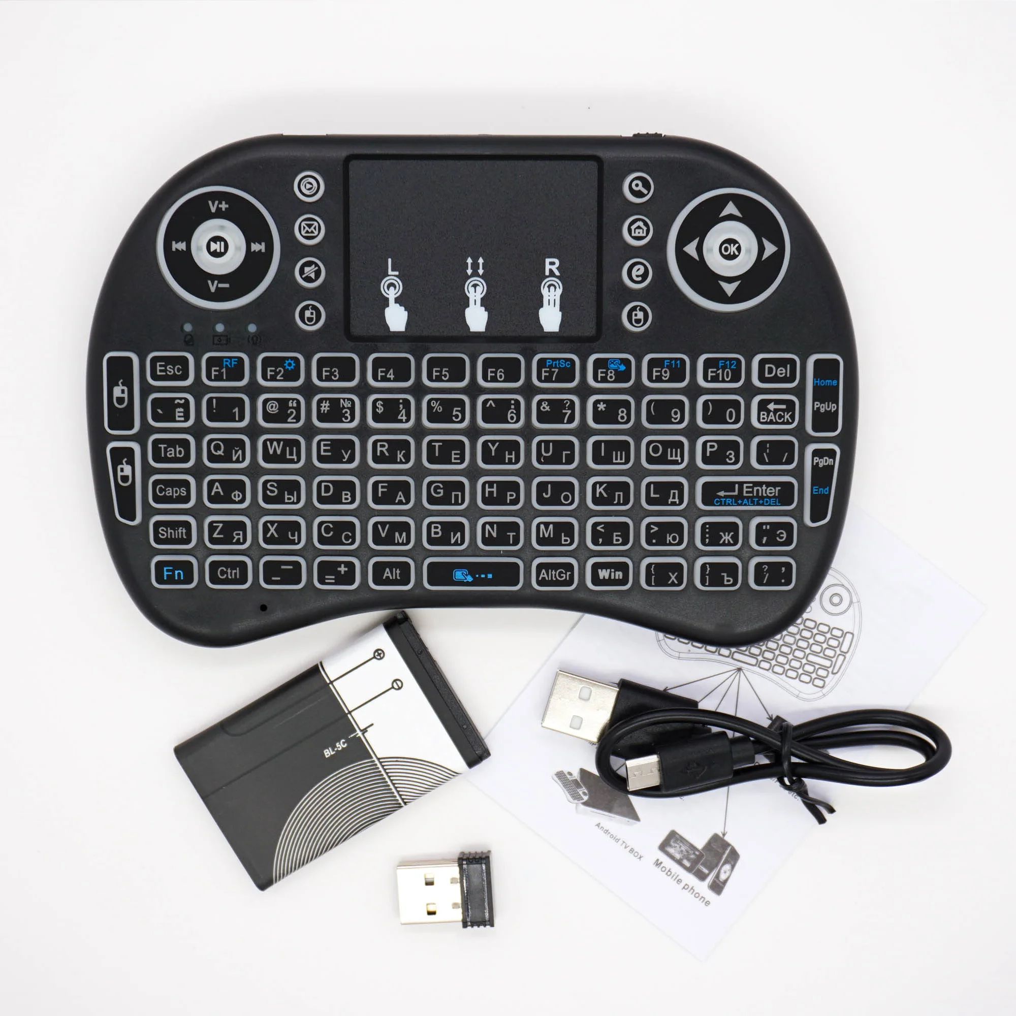 I8 Mini 2,4G Беспроводная клавиатура с тачпадом цветная подсветка аэромышь с русской и английской раскладкой для Android TV Box Smart TV ПК PS3 IPTV ноутбук