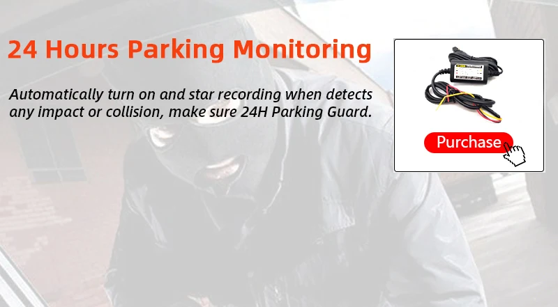 Когда кто-то рядом с вашим автомобилем или транспортным средством начинает двигаться, автоматически включается и начинает запись при обнаружении любого воздействия или столкновения, устройство автоматически записывает в течение нескольких секунд, убедитесь, что 24ч защита парковки. Примечание: вам нужно купить провод OBD Buck для достижения этой функции.