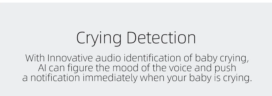 С инновационным звуковым распознаванием плача ребенка, Al может определить настроение голоса и немедленно нажать на анодирование, когда ваш ребенок плачет.