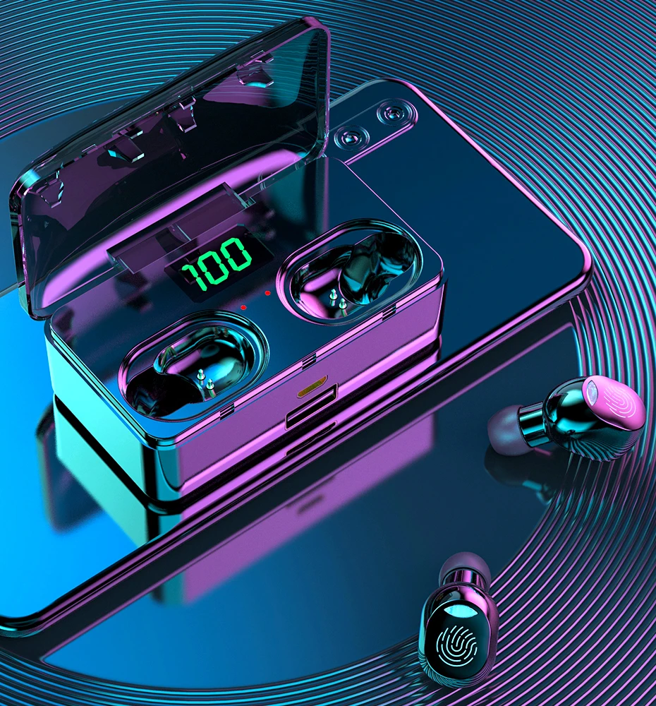 В светодиодный дисплей батареи на зарядный чехол показывает, сколько заряда батареи в зарядный чехол от 1% до 100%. Когда вставляете наушники в чехол, они автоматически отключаются и заряжаются, зарядный чехол заряжается через usb-кабель.