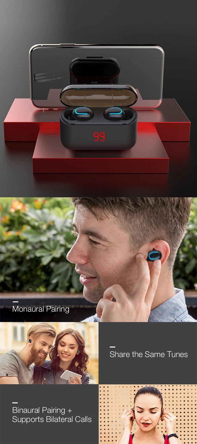 4. Беспроводное стерео, разделение левого и правого каналов, оба уха могут использоваться отдельно.