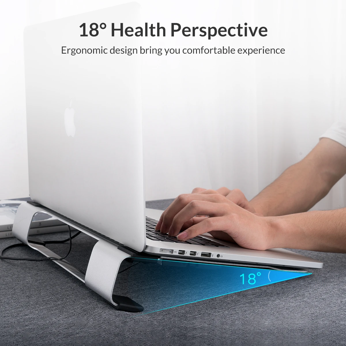 Противоскользящая охлаждающая подставка для ноутбука, которая поможет сохранить ваш ноутбук на месте, протестирована под углом 18 ° для комфорта, обеспечивает правильное расстояние обзора экрана, уменьшает напряжение глаз и шеи и способствует хорошей осанке.