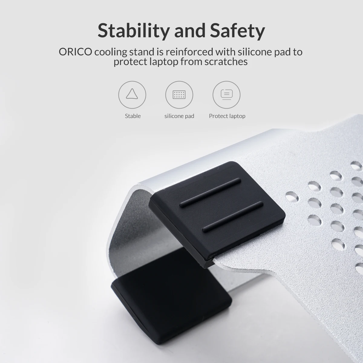 Подставка для ноутбука изготовлена из высококачественного авиационного алюминия легкого материала для защиты вашего ноутбука. Охлаждающая подставка ORICO усилена силиконовой накладкой для защиты ноутбука от царапин. И с использованием инновационной технологии подшипника, вентиляторы вращаются в более высокой скорости и в то же время очень тихий.