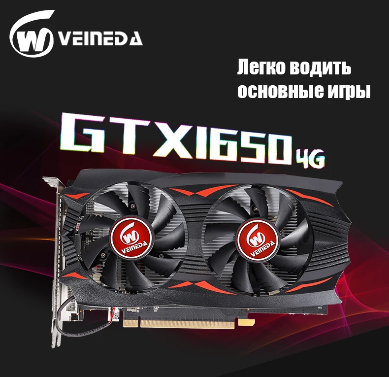 Графическая карта VEINEDA gtx 1650, 4 Гб, 128 бит, GPU, 8004 МГц, GDDR5, PCI Express X16, HDMI, DVI, DP, gtx1650, видеокарта для игр nVIDIA Geforce