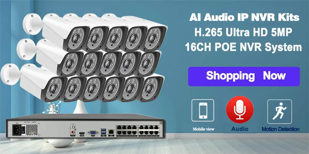 AI 4K 5MP H.265 16CH система POE CCTV безопасности NVR комплект аудио наружная водонепроницаемая IP камера система видеонаблюдения с ТБ HD