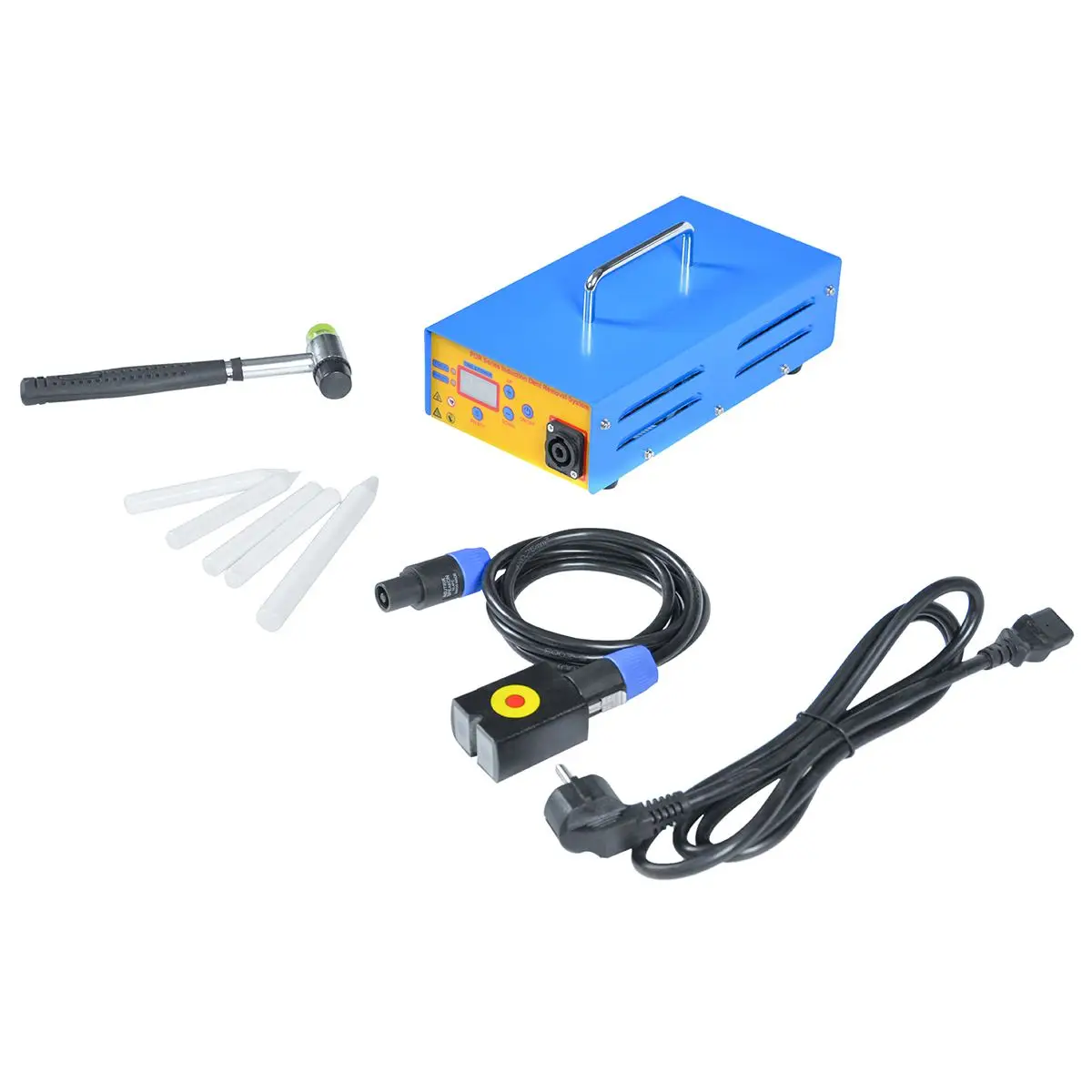 Безболезненная машина для удаления вмятин, индукционный нагреватель для удаления вмятин Вход частота: 50/60 Гц Выход Мощность: 1,38 кВт Выходная частота: 150 кГц Выходной кабель питания: 160 см Класс изоляции: F Размер изделия: 25x14x8 см Размер коробки: 31x16x32,5 см Вес: 4,1 кг Опциональный узор: #1: штепсельная вилка европейского стандарта 220 В #2: штепсельная вилка стандарта США 110 В Особенности: ● Сертификация CE,UL,CCC,ROHS,FCC,PSE. ● (Безболезненное удаление вмятин) Серия Hotbox Магнитная Индукционная система удаления вмятин, может быстро и чисто удалить мелкие вмятины, дверные вмятины и другие мелкие мягкие вмятины на транспортных средствах, который имеет цифровой экран и относительное управление для настройки времени и мощности. ● Это один из видов быстрого, удобного и профессионального инструмента, специально разработанного для профессиональных работников транспортных средств, которые могут сэкономить время во время процесса ремонта. Поэтому Индукционная система удаления вмятин является выгодным выбором для ремонта кузова автомобиля, чтобы удалить более мягкую вмятину. ● Нет необходимости в дополнительных и дополнительных материалах, Индукционная система удаления вмятин легко удалит Различные мягкие и маленькие вмятины, нагревая панель за краской снаружи панели, снятие стресса, удерживающего вмятину, и снятие вмятин с помощью индукционного теплового расширения, особенно в труднодоступных местах, или в местах, которые трудно получить позади. Посылка включает в себя: 1 х Основной 1 х Кабель питания 1 x Головка быстрого подключения с кабелем 5 x ремонтные ручки 1 молоток