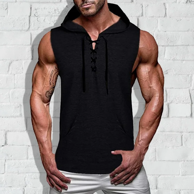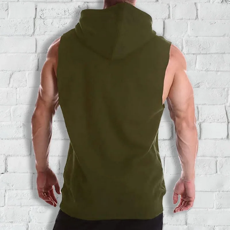 Особенности: мужской жилет с капюшоном, однотонный топ без рукавов, майка, повседневный Топ