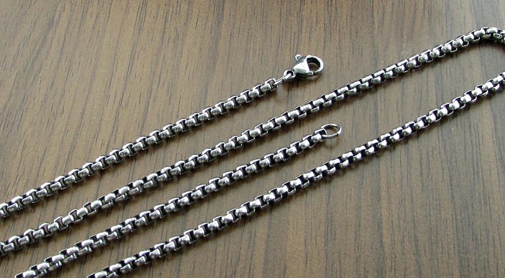 Наша Посеребренная цепочка из нержавеющей стали доступна в ожерелье и браслете длиной. Меньший калибр Снаряженная Цепь часто используется для подвески цепи.