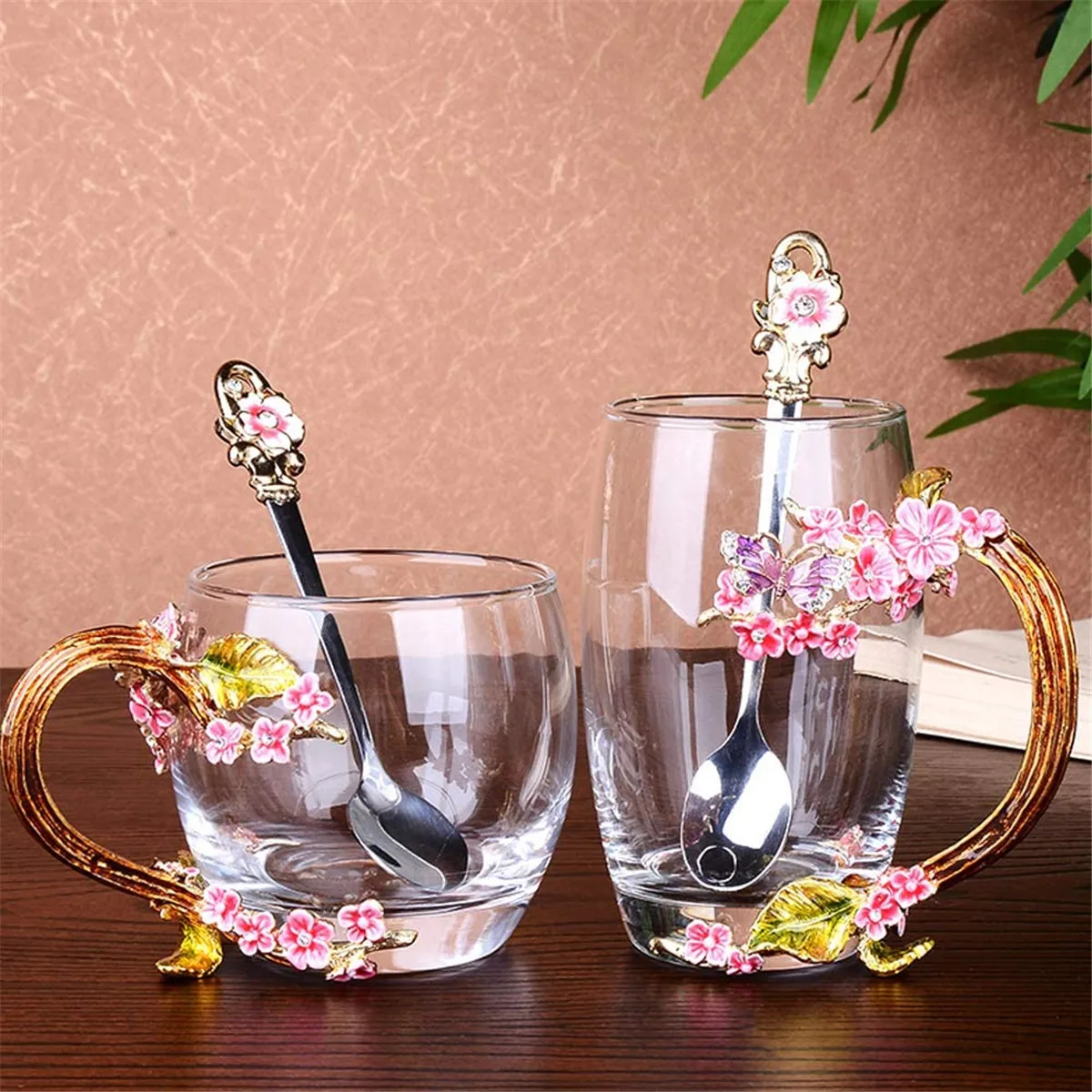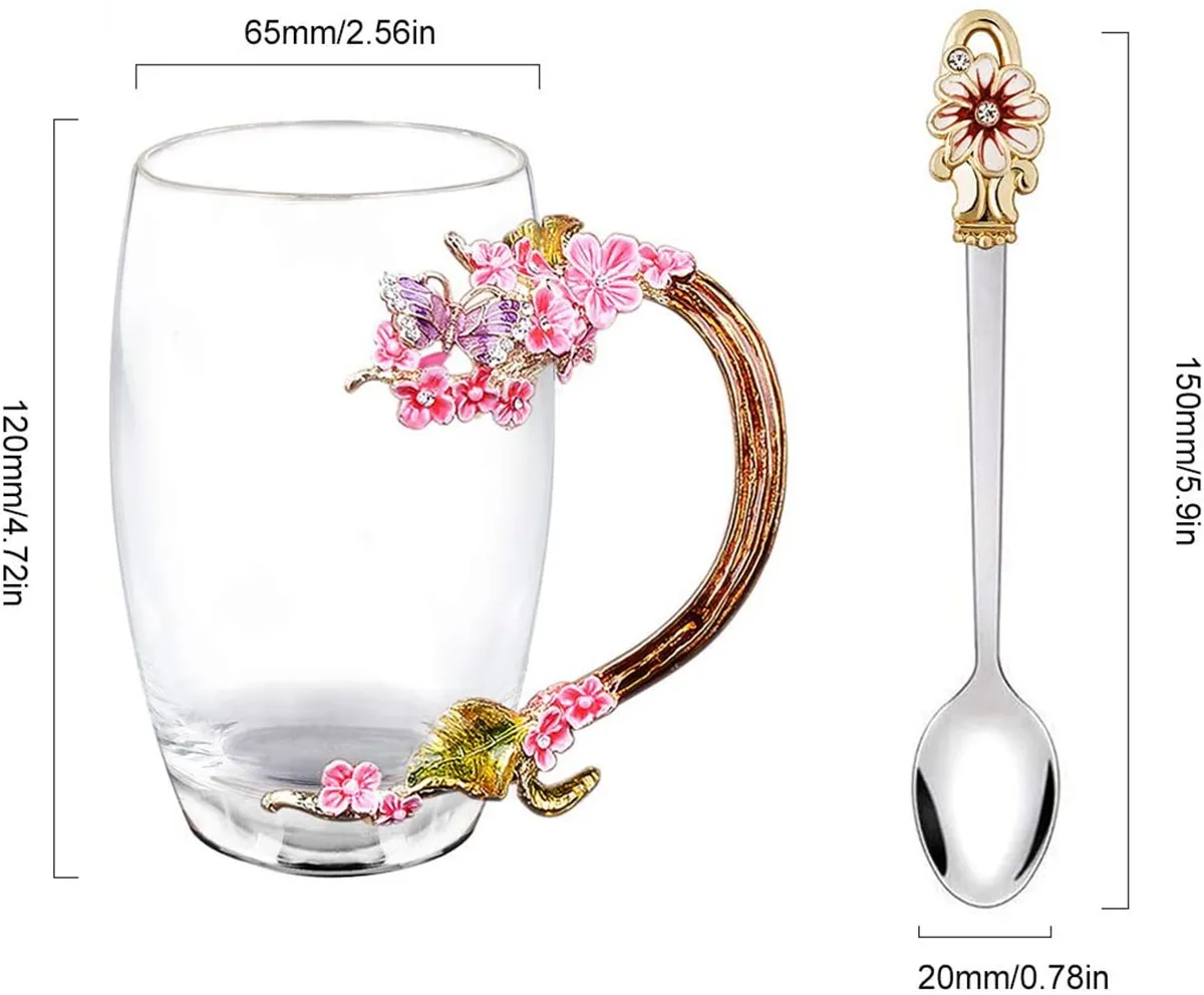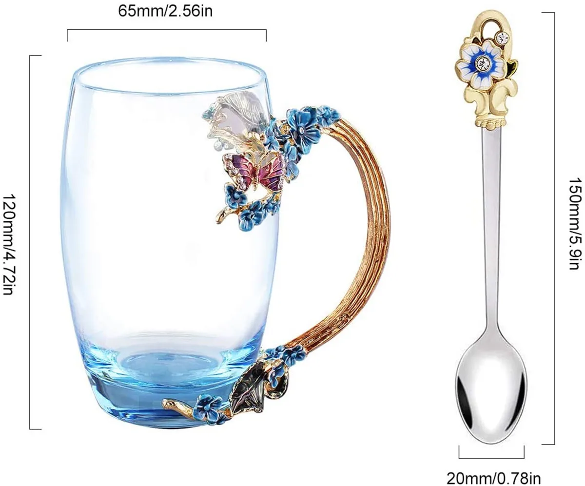 ✔Безопасный затеняющий материал, высокотемпературный устойчивый материал, он может выдерживать температуру ниже 120 ° C. Холодные напитки и энтузиазм. ✔Красивые чашки поставляются в комплекте с изысканной эмалированной ложкой. Не нужно покупать ложки отдельно. Отлично смотрится с чашкой. Используется для перемешивания и напыления. Это очень красиво. ✔Подходит для холодных или горячих напитков. Этот стакан идеально подходит для питья чая, кофе, сока, ароматного чая, черного чая или любых других холодных или горячих напитков. С тортом и десертом вы можете наслаждаться элегантным послеобеденным чаем.✔Легко чистить и мыть в посудомоечной машине. Прямая очистка стеклянного материала также очень удобна. Изделие оснащено чистящей тканью. Используется для протирания пятен воды.