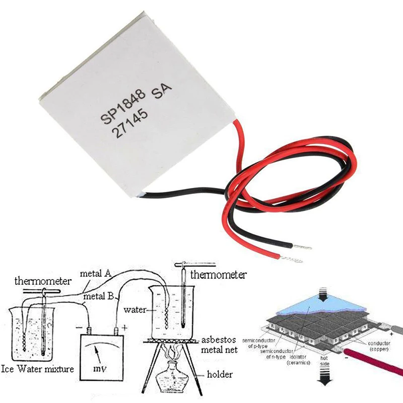 Внутри находится полупроводниковый материал, изготовленный из висмута теллурида (Bi2Te3).