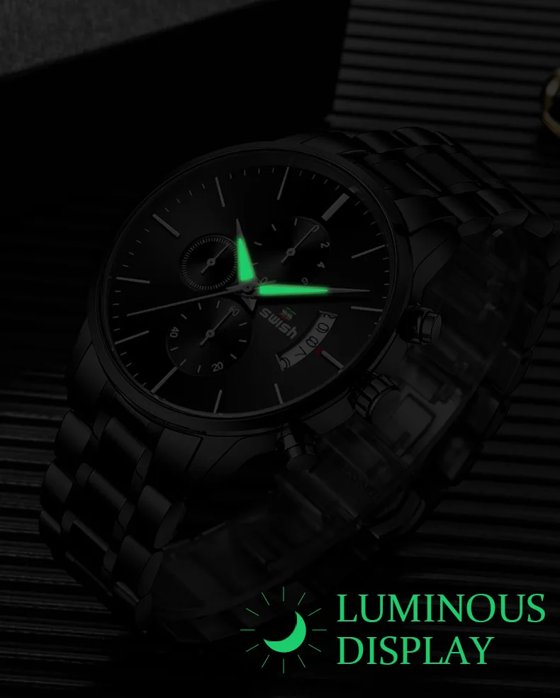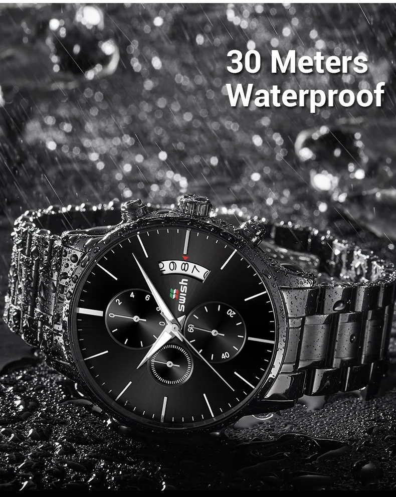 Бренд: SWISH Стиль: спортивный, Повседневный, деловой, модный Механизм: оригинальный кварцевый механизм Основная особенность * 100% новые и высококачественные ** 3 АТМ/30 М Водонепроницаемость (поддержка холодного душа и плавания, не используйте часы под водой, не поддерживайте горячую воду); *** Качественный чехол из нержавеющей стали; **** Качественная нержавеющая сталь 1 * набор = 1 * SWISH Watch