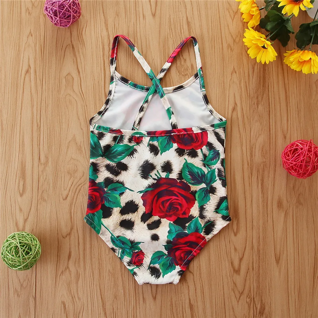 Летний милый Цельный купальник для девочек с леопардовым принтом