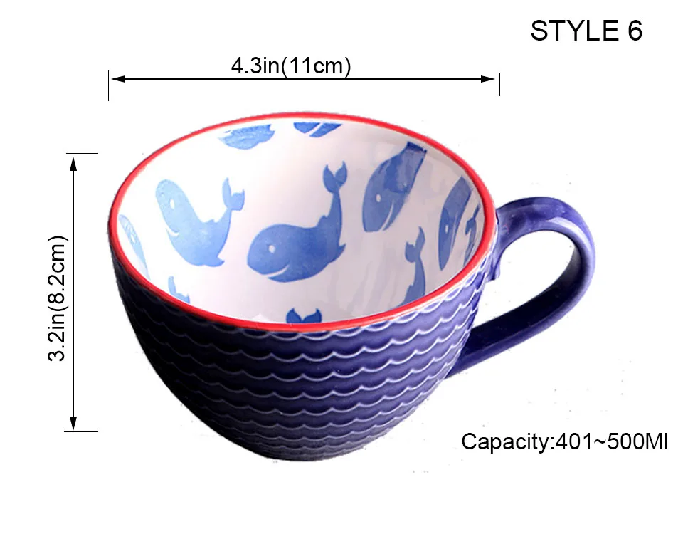 Керамическая кофейная кружка BORREY, большая емкость, кружка для завтрака, молочная кружка, китайская фарфоровая чайная чашка, ручная роспись, цветные кружки, посуда для напитков, кофе