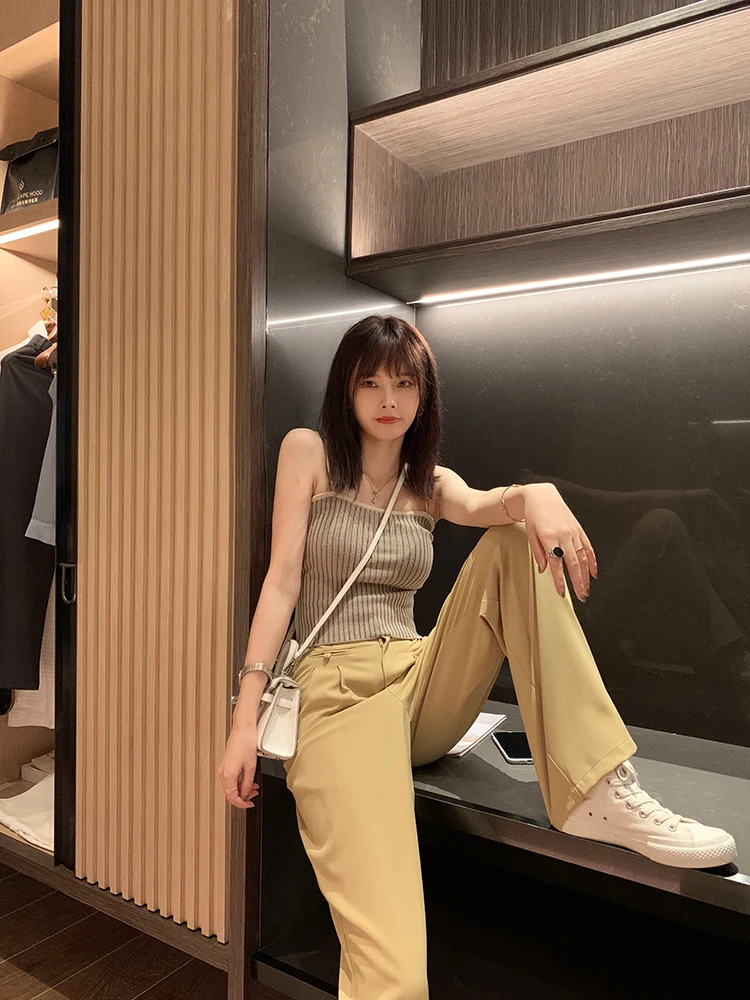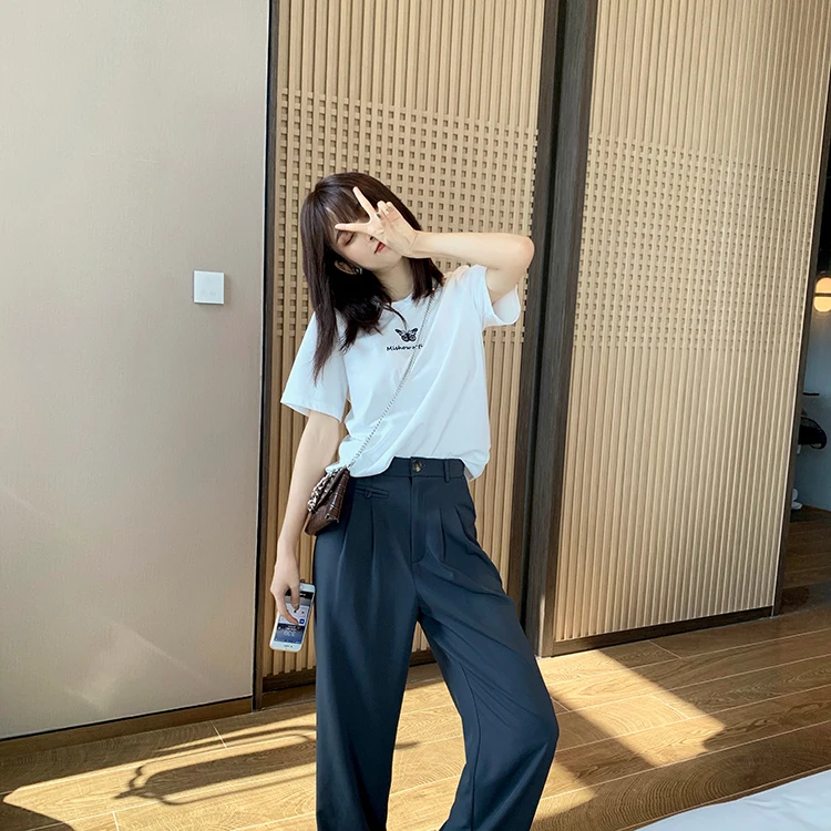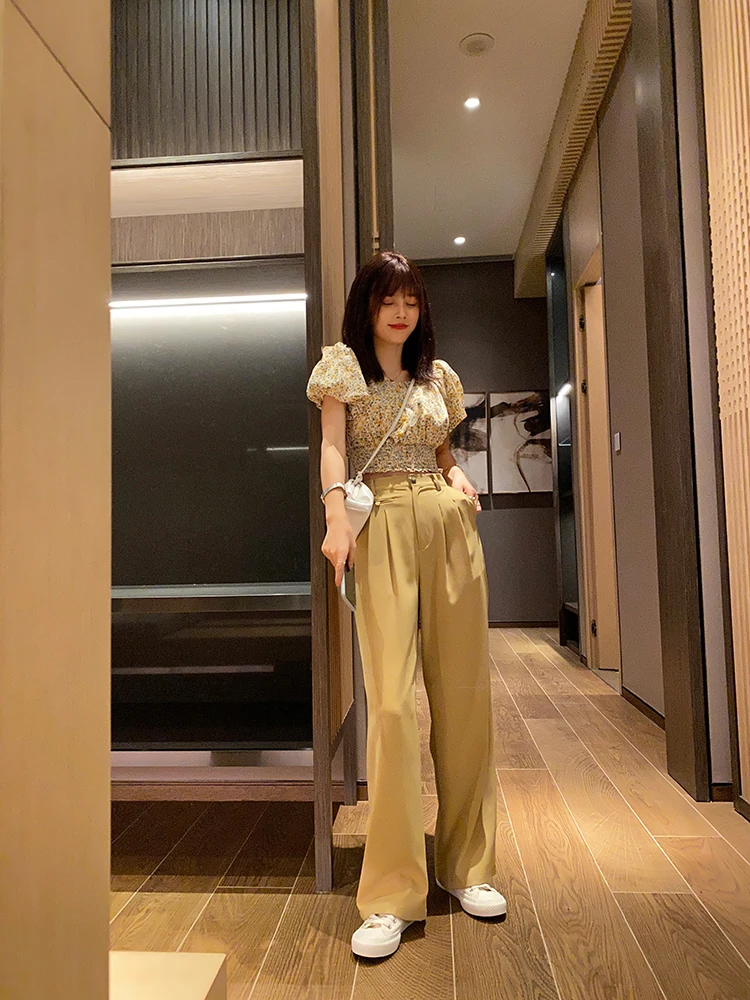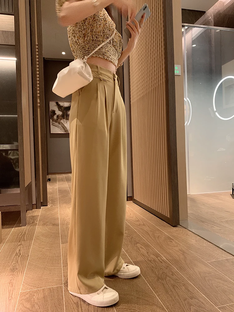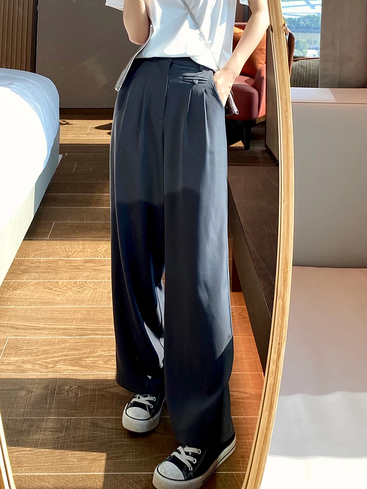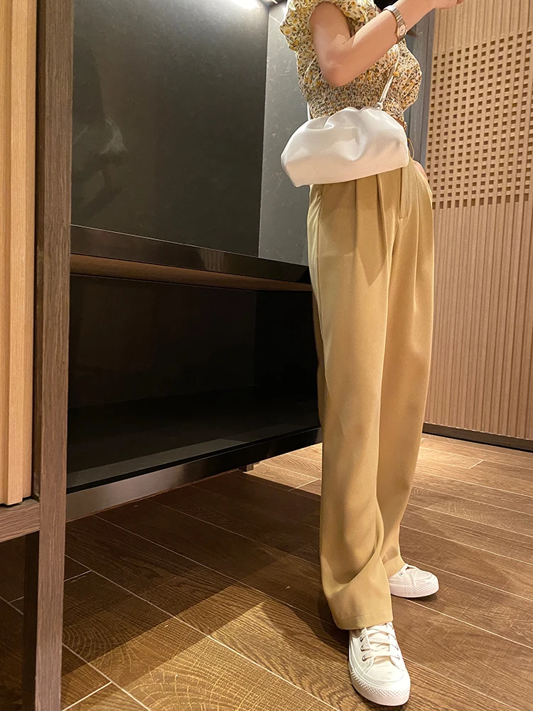 Женские плиссированные брюки палаццо повседневные со средней талией и широкими