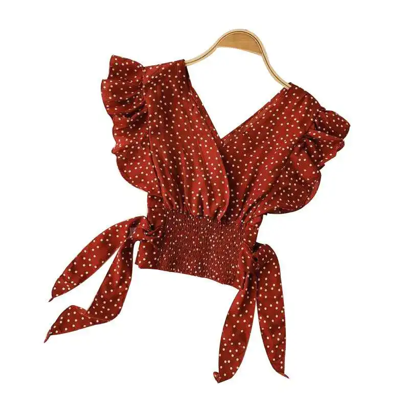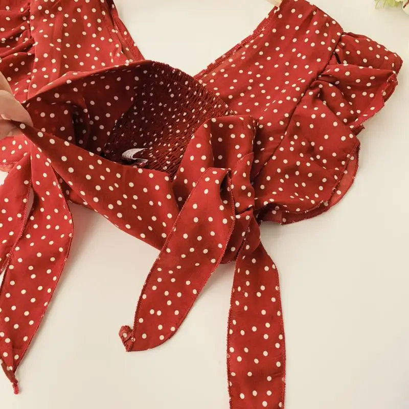 Корейская версия милого галстука в горошек с v-образным вырезом Feifei рукава Эластичный плиссированный пояс галстук-бабочка короткий участок шифоновая рубашка женская