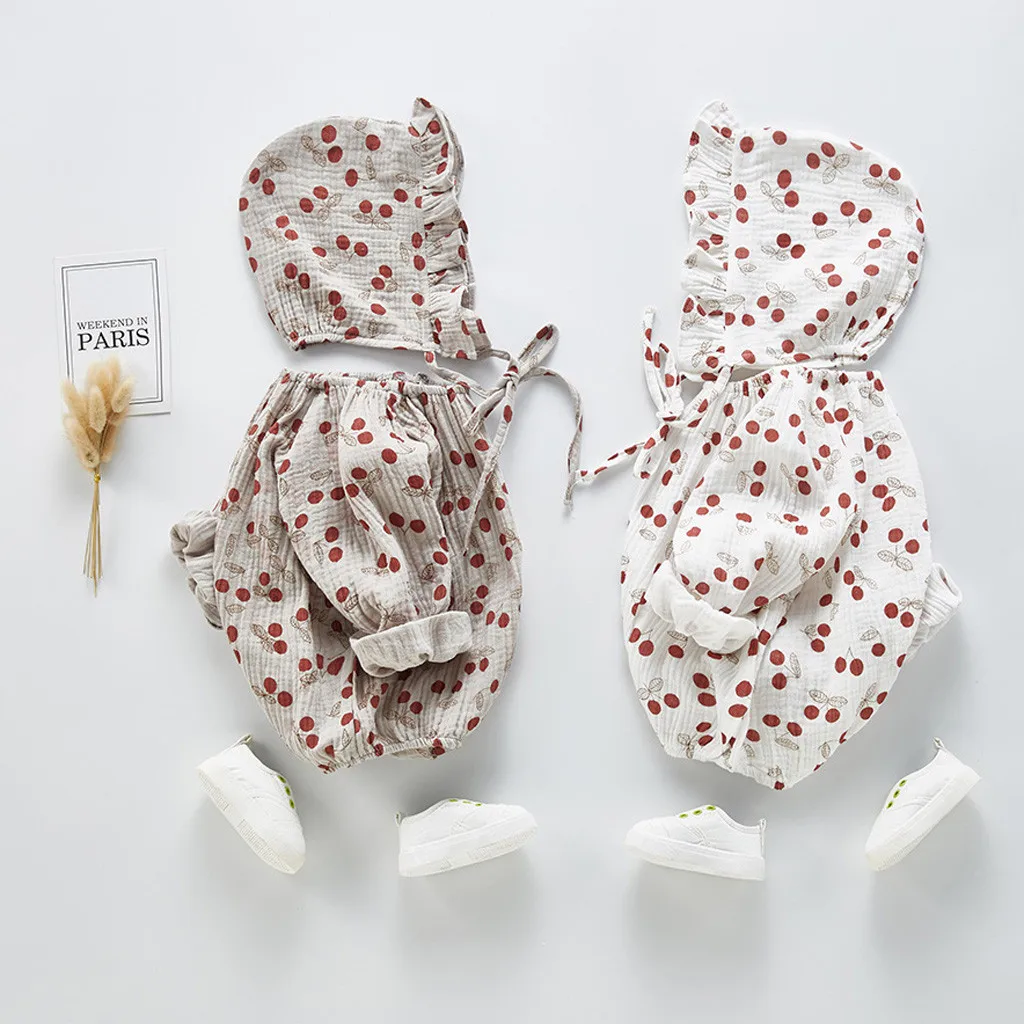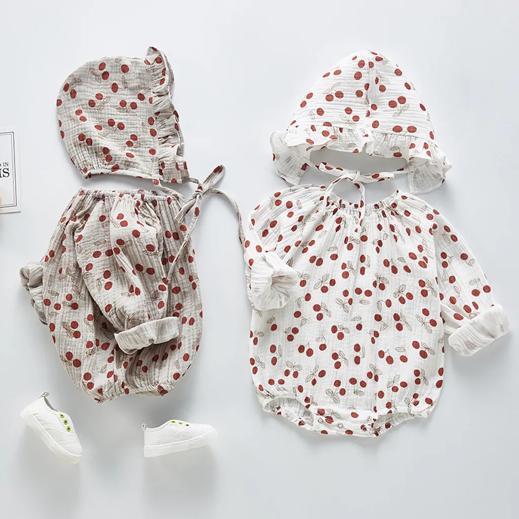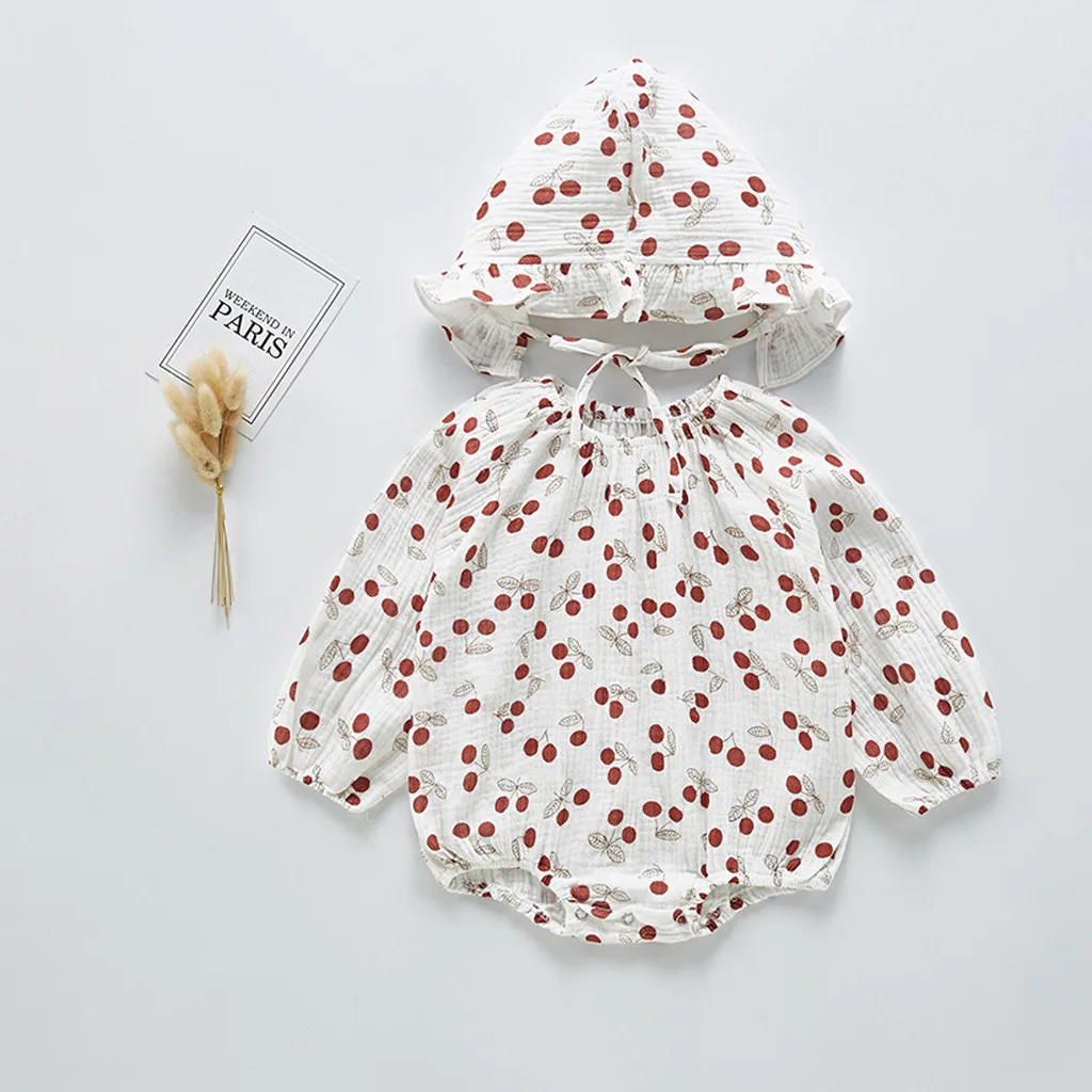 Explosion models girls hakama bag fart clothing baby long-sleeved fruit print romper + hat fashion simple clothes детские вещи 5