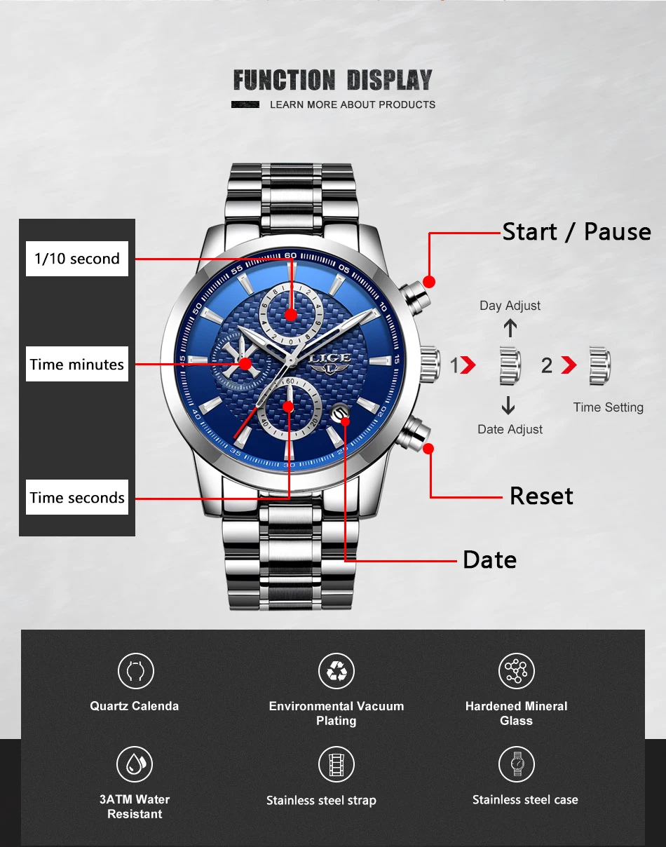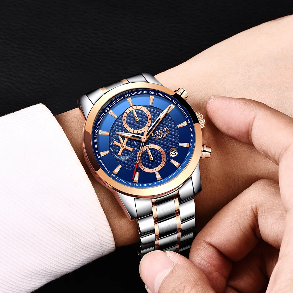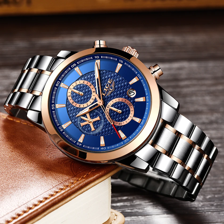 LIGE спортивные часы для мужчин светящиеся кварцевые с указкой самолета