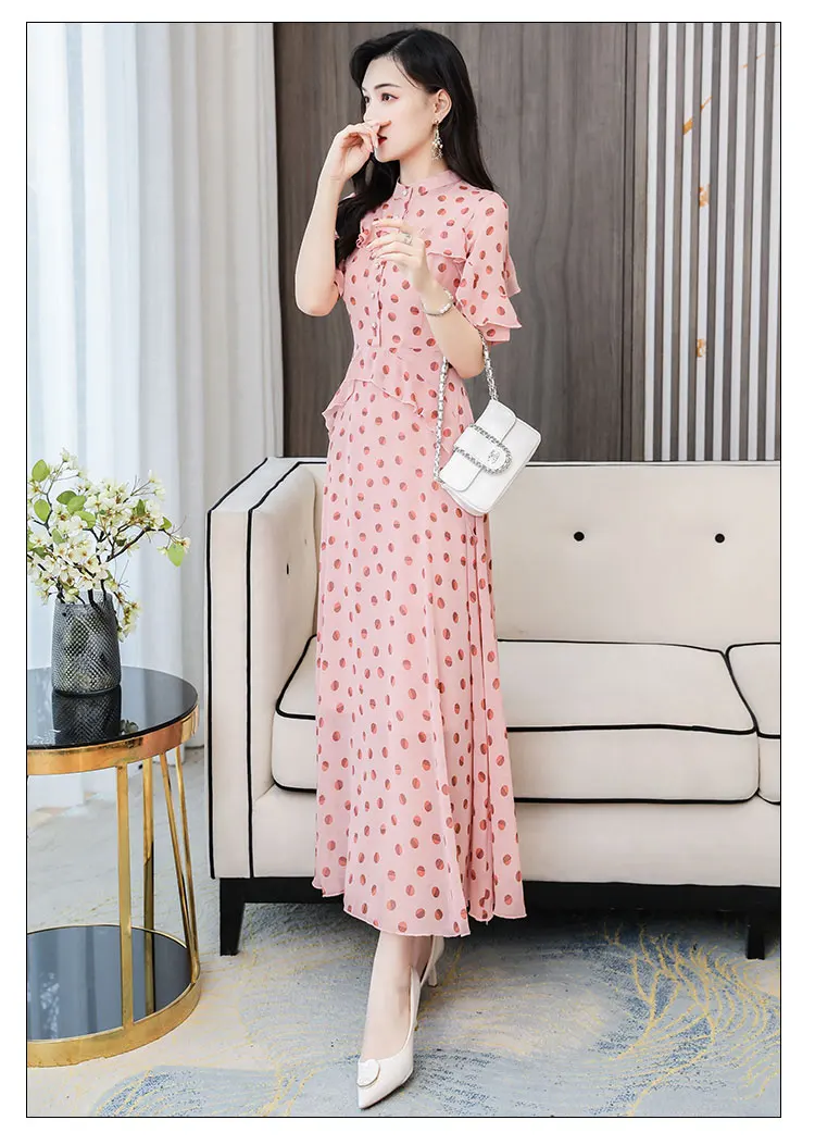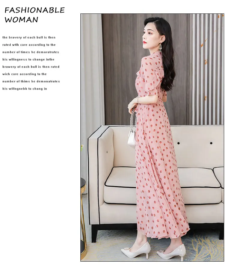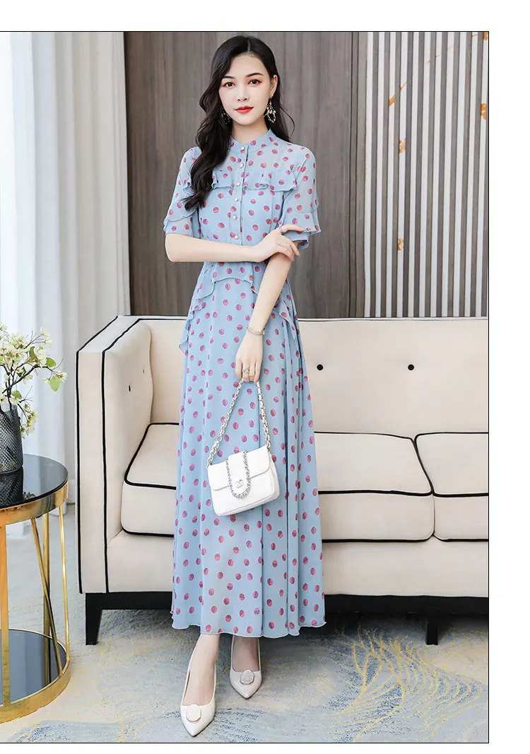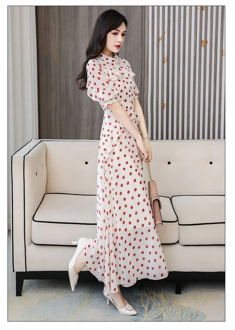 HUTI WJWYL Новое поступление весна лето шифоновые милые макси платья в горошек 3XL размера плюс винтажные Подиумные миди платья элегантные женские облегающие вечерние платья