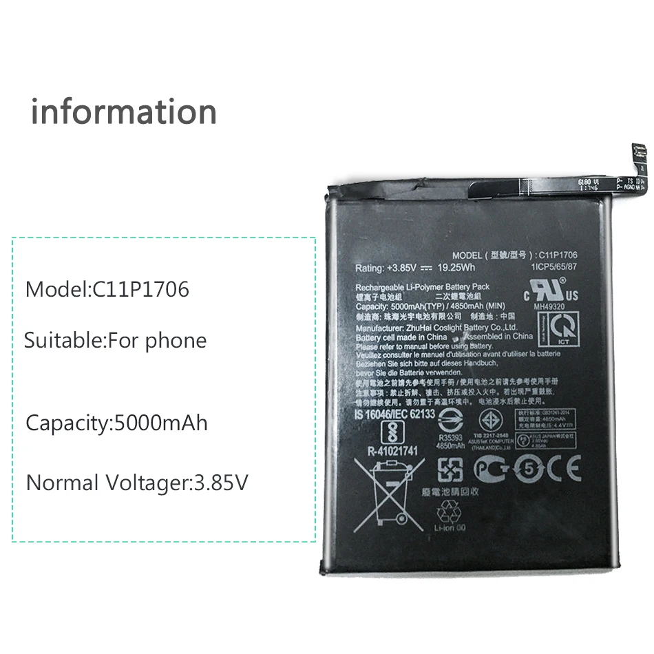 Modname = ckeditor Мощный C11P1706 5000 мАч перезаряжаемый Мобильный телефон батарея для ASUS C11P1706 стабильное напряжение полимерный литий-ионный аккумулятор