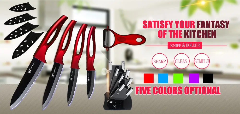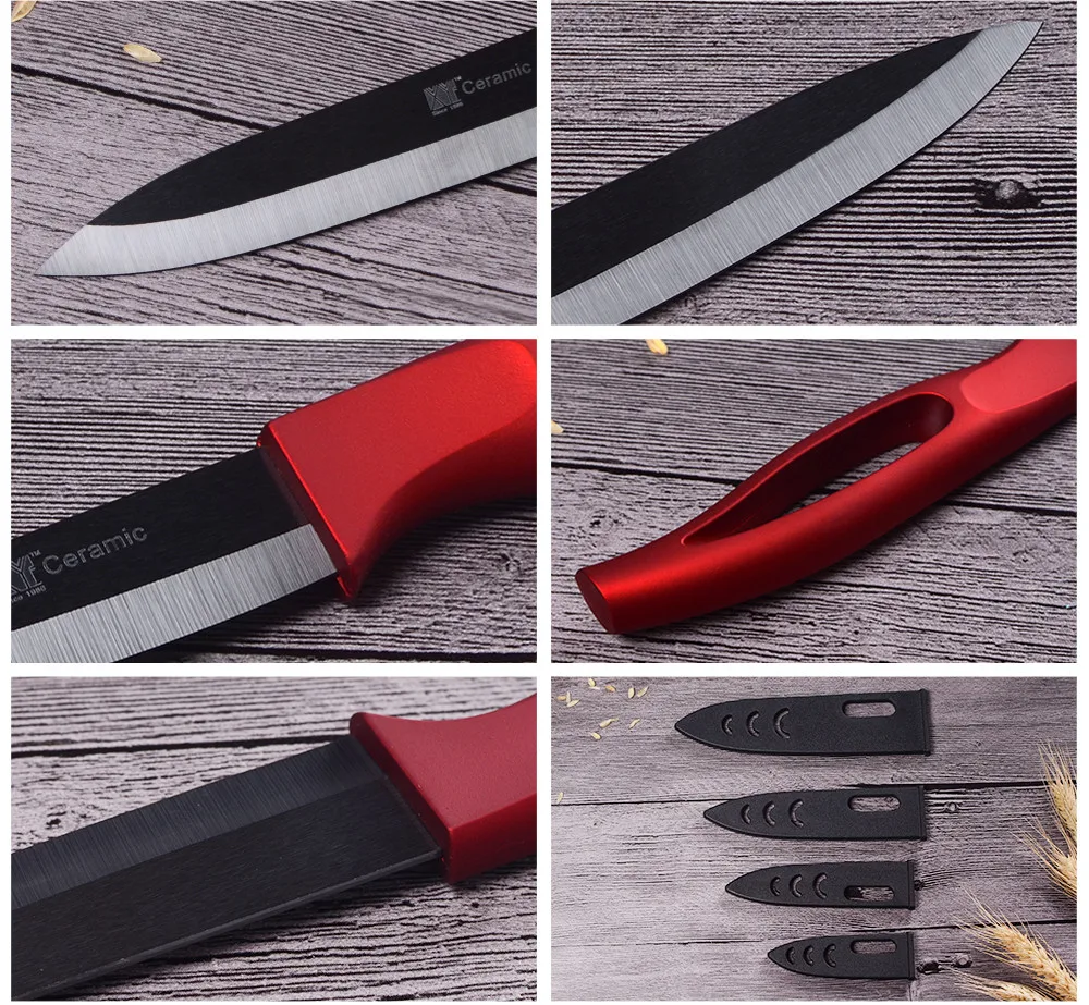 1*6 дюймовый поварской нож 1*5 дюймов нож для нарезки 1*4 дюйма Универсальный нож 1*3 дюйма нож для очистки овощей 1 * Керамическая овощечистка 4 * Чехлы для ножей (Вес: около 36 г)Посылка входит:
