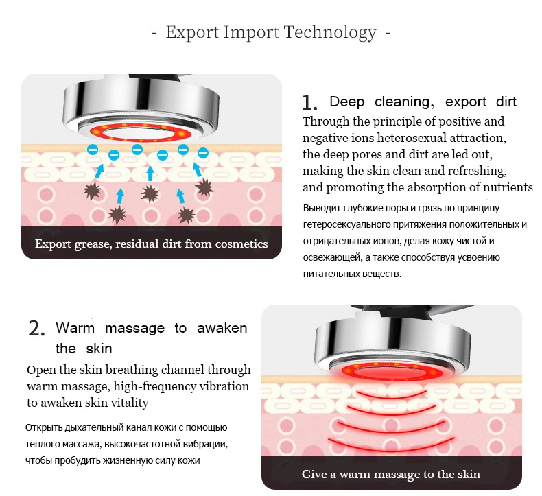 Электронный массажер для лица CF029, омоложение кожи, очистка пор, средство для ухода за кожей, гальванический Ион +/-машина, Belleza, для лица