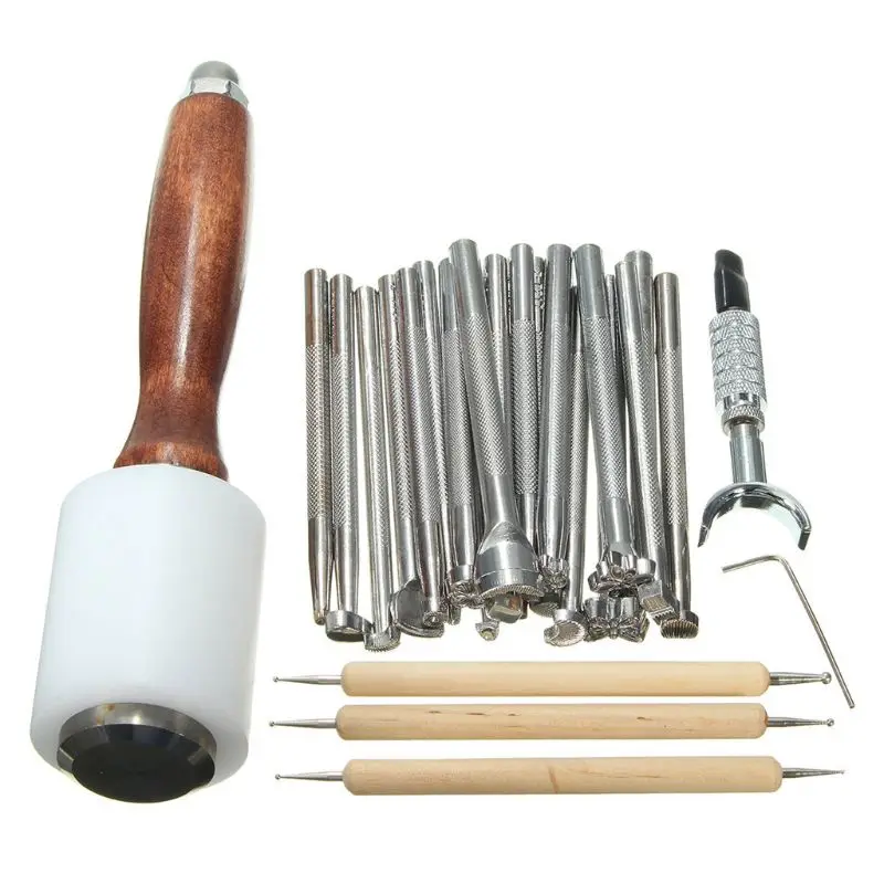 25 шт. кожаные инструменты для тиснения ручного ремесла набор штампов различной формы Набор для изготовления седла DIY перфоратор деревянный молоток Beveler
