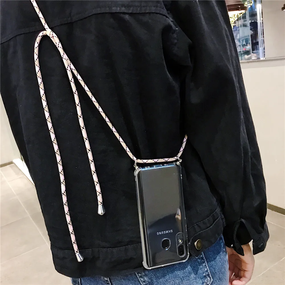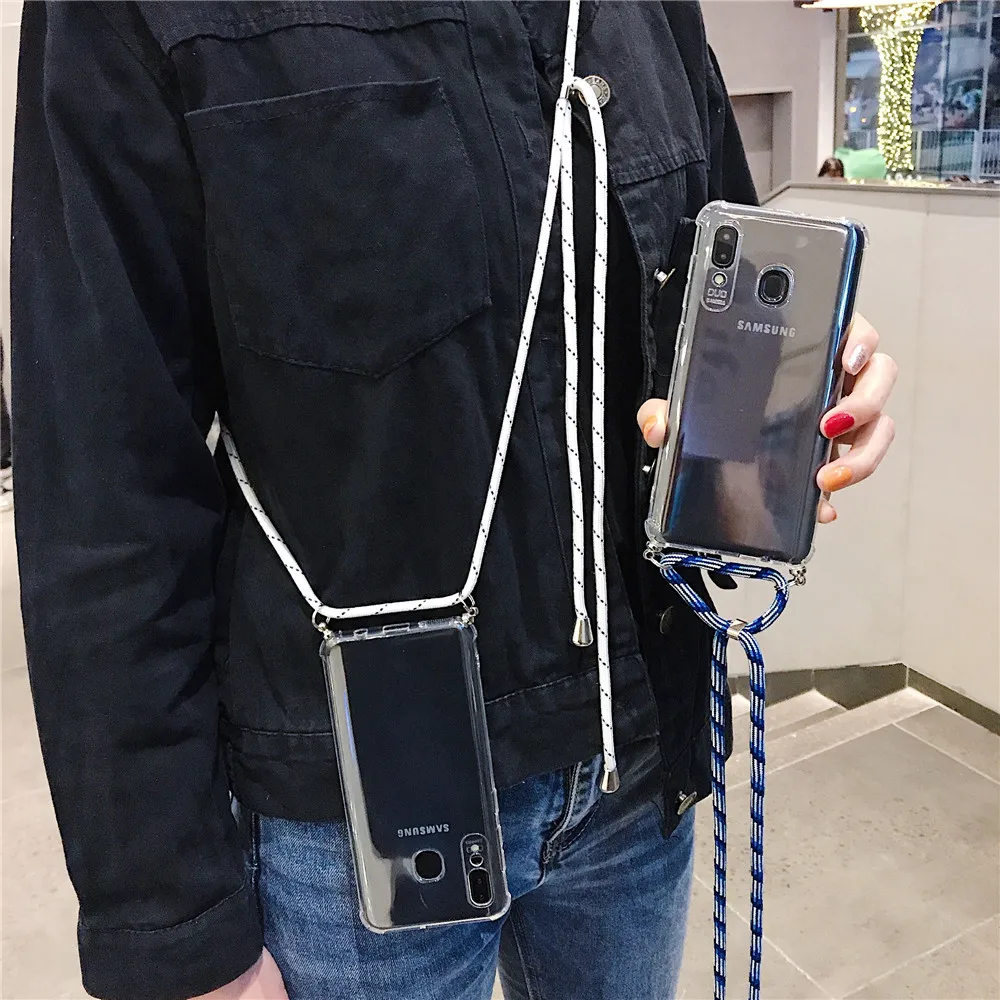 Прозрачный мягкий чехол из ТПУ для Samsung S7 Edge S8 S9 S10E S20 Plus Lite со шнуровкой, ударопрочный черный чехол