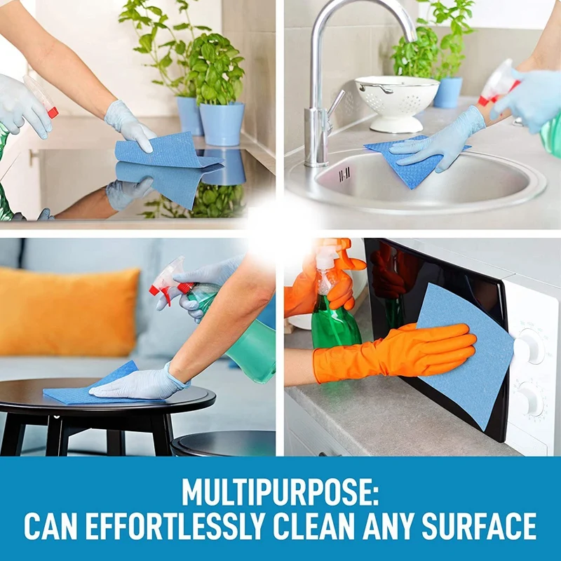 Универсальная и многофункциональная чистящая ткань может использоваться в качестве полотенец для посуды и кухонных губок, а также для детейлинга автомобиля и домашней уборки. Подгоняйте свои размеры легко с помощью бытовых ножниц.