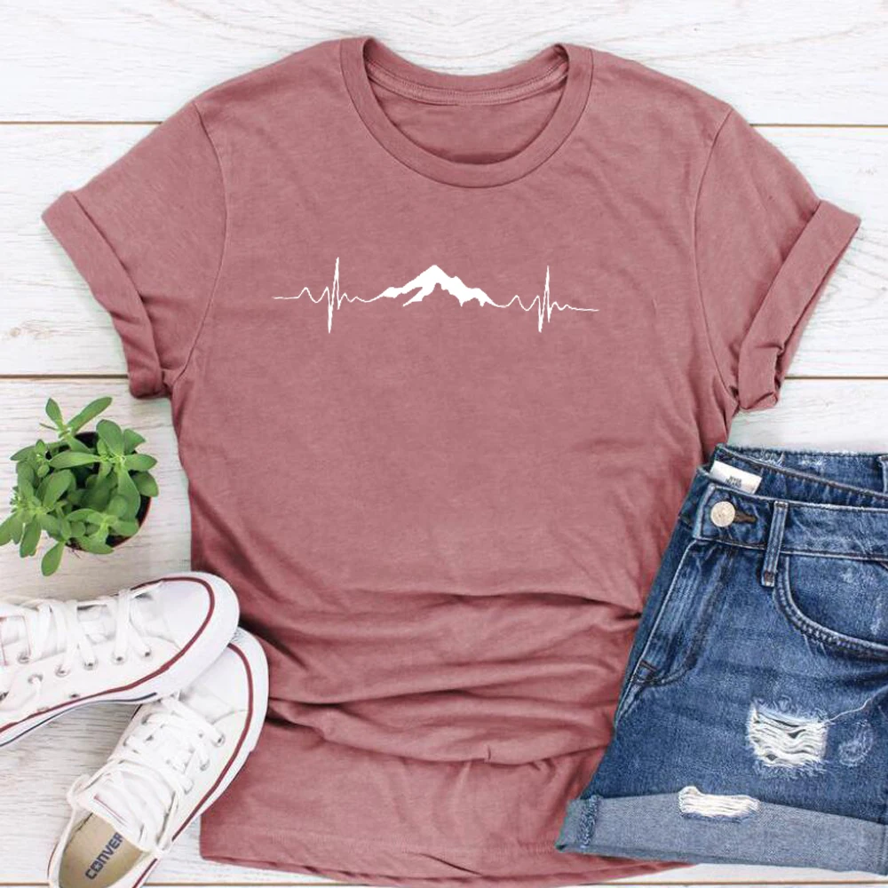 Женская хлопковая Футболка с принтом «горы и Пешие прогулки», Повседневная забавная футболка для леди, Yong, топ для девочек, хипстерские хлопковые футболки с графикой