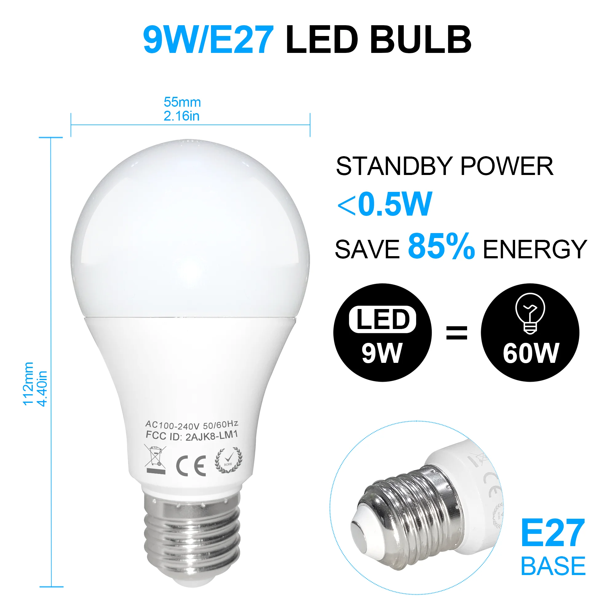 Независимо от того, находитесь ли вы дома или на ходу, вы можете дистанционно управлять включением/выключением вашей умной лампы, установив приложение smart life с вашего телефона или планшета. Легко установить расписание для вашей умной лампы или создать различные группы для управления светом в вашем доме. Работает только с Wi-Fi сетью 2,4 ГГц.