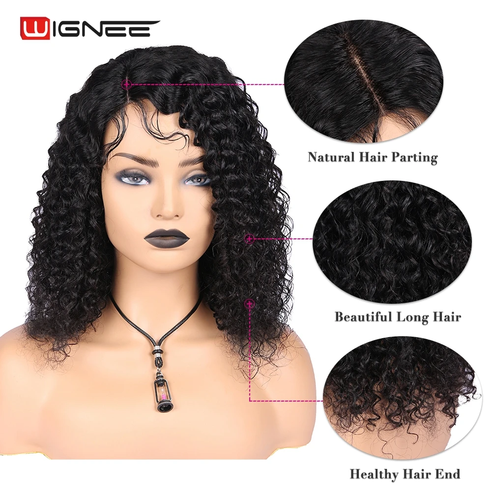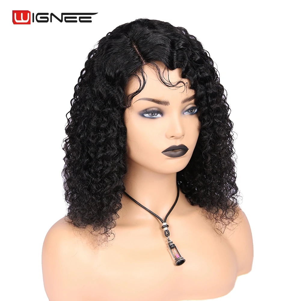 Wignee Короткие вьющиеся боковые части человеческих волос парики с детскими волосами для женщин натуральные черные Remy бразильские волосы модные дешевые человеческие парики